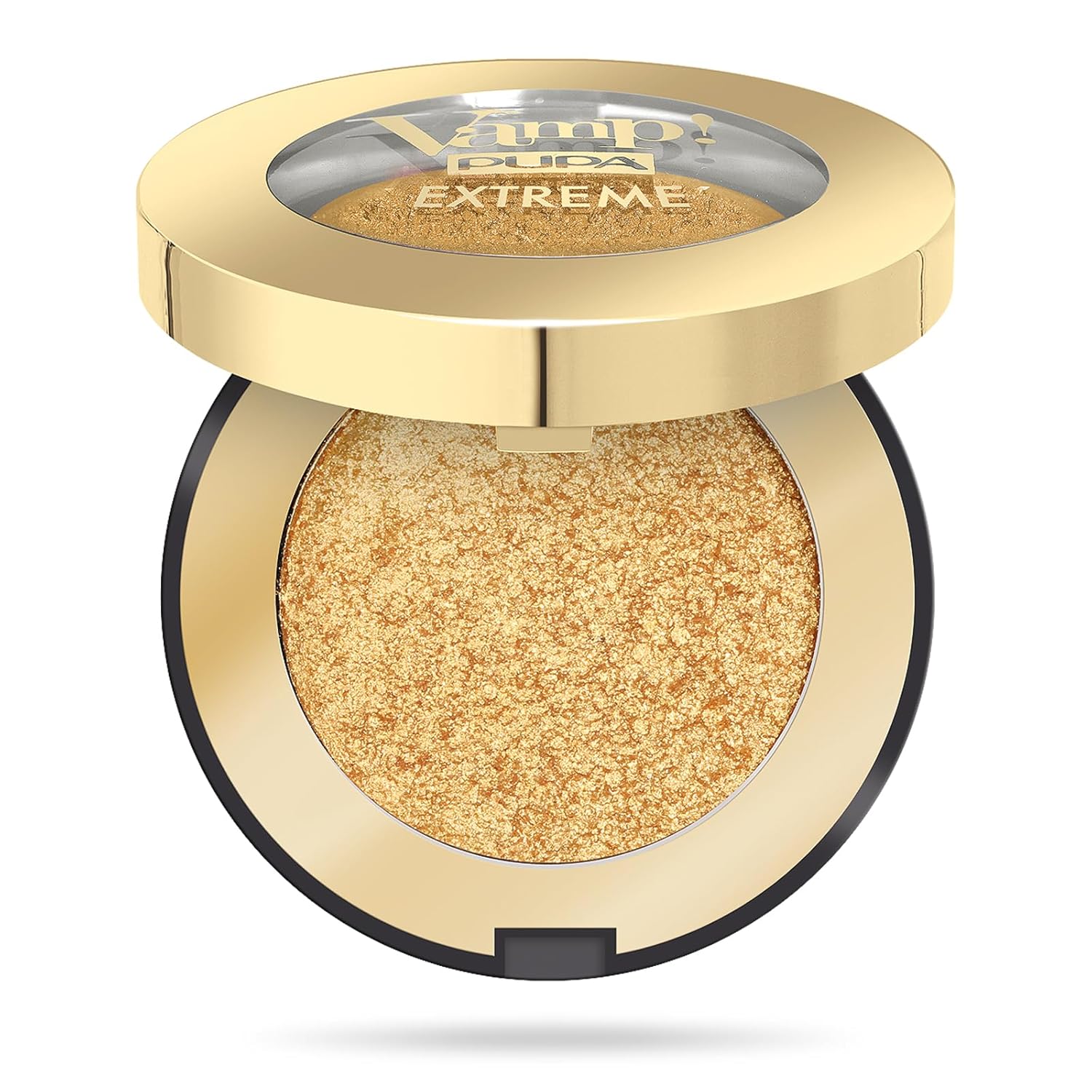 PUPA Milano Vamp! Extreme Eyeshadow 001 Extreme Gold - Creamy Powder Shadow With Intense, Metallic Finish - Create Stunning, Smokey, Shimmer Eye Looks - Blendable, High Pigment Formula - 0.088 oz