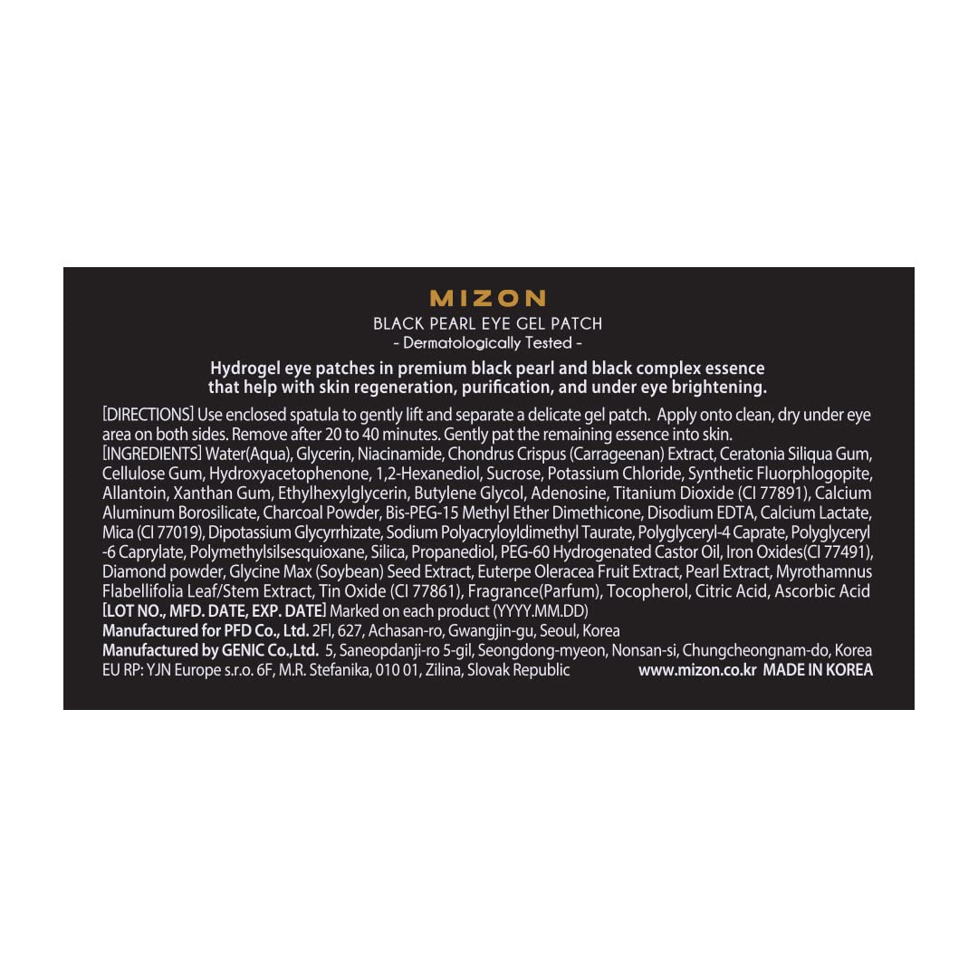 MIZON Pearl Eye Gel Patch Masks, Eye Treatment Mask Reduces Wrinkles and Puffiness, Dark Circles treatment, Hydrogel Eye Patches (Black Pearl)
