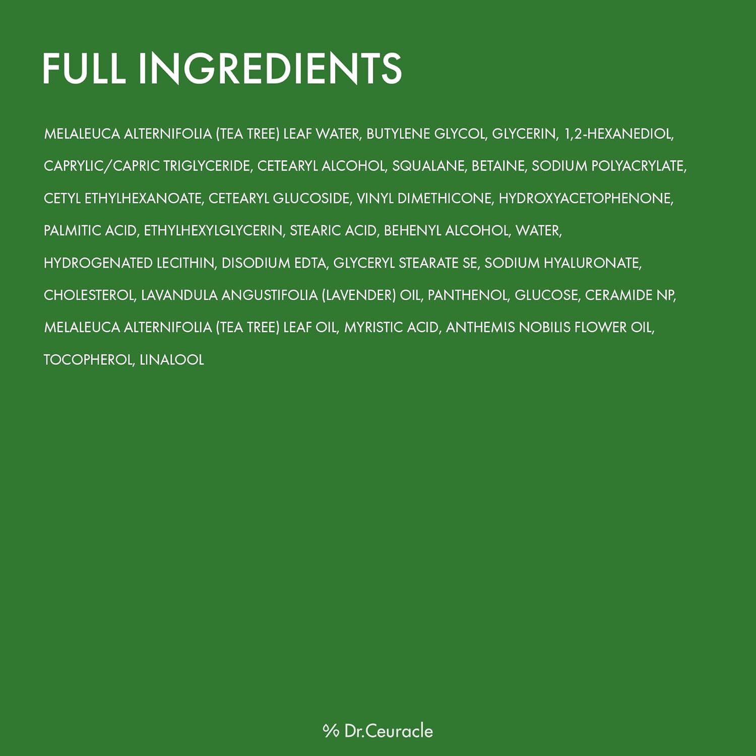 - KEY INGREDIENT – TEA TREE: Tea Tree is renowned for its natural calming and purifying properties. Combined with Panthenol, Squalane, and Sodium Hyaluronate, it helps protect and repair the skin moisture barrier while promoting a healthy, clear complexion.