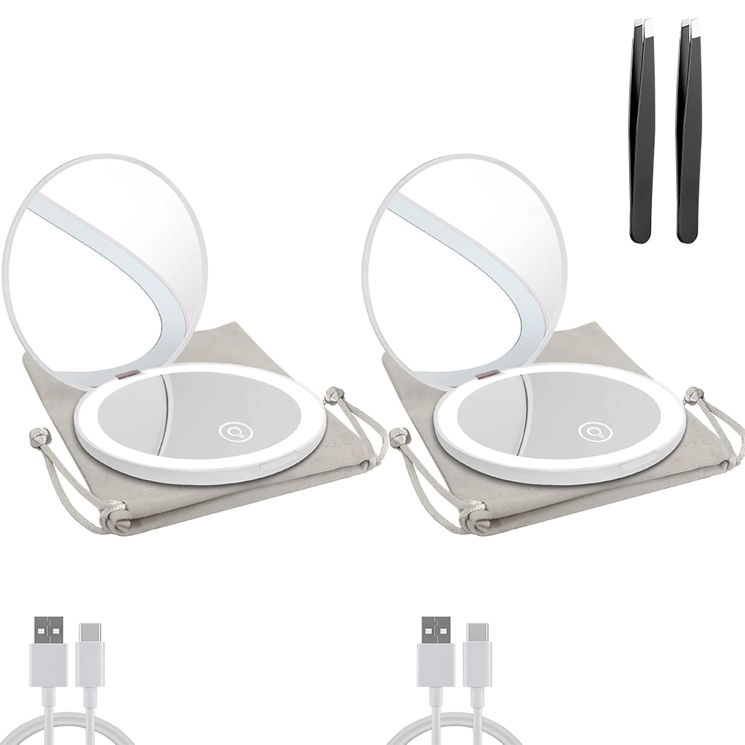 - 【What You Get & Product Guarantee】: Including: 1*Lighted Makeup Mirror 1*USB Type-C Cable(Note: The acceptable power adapter is 5V,1A-2A.)1*User Manual 1*Storage bag 1x Tweezer. FCC, CE, ROHS approval. 12 months warranty and 24-hour friendly customer service.
