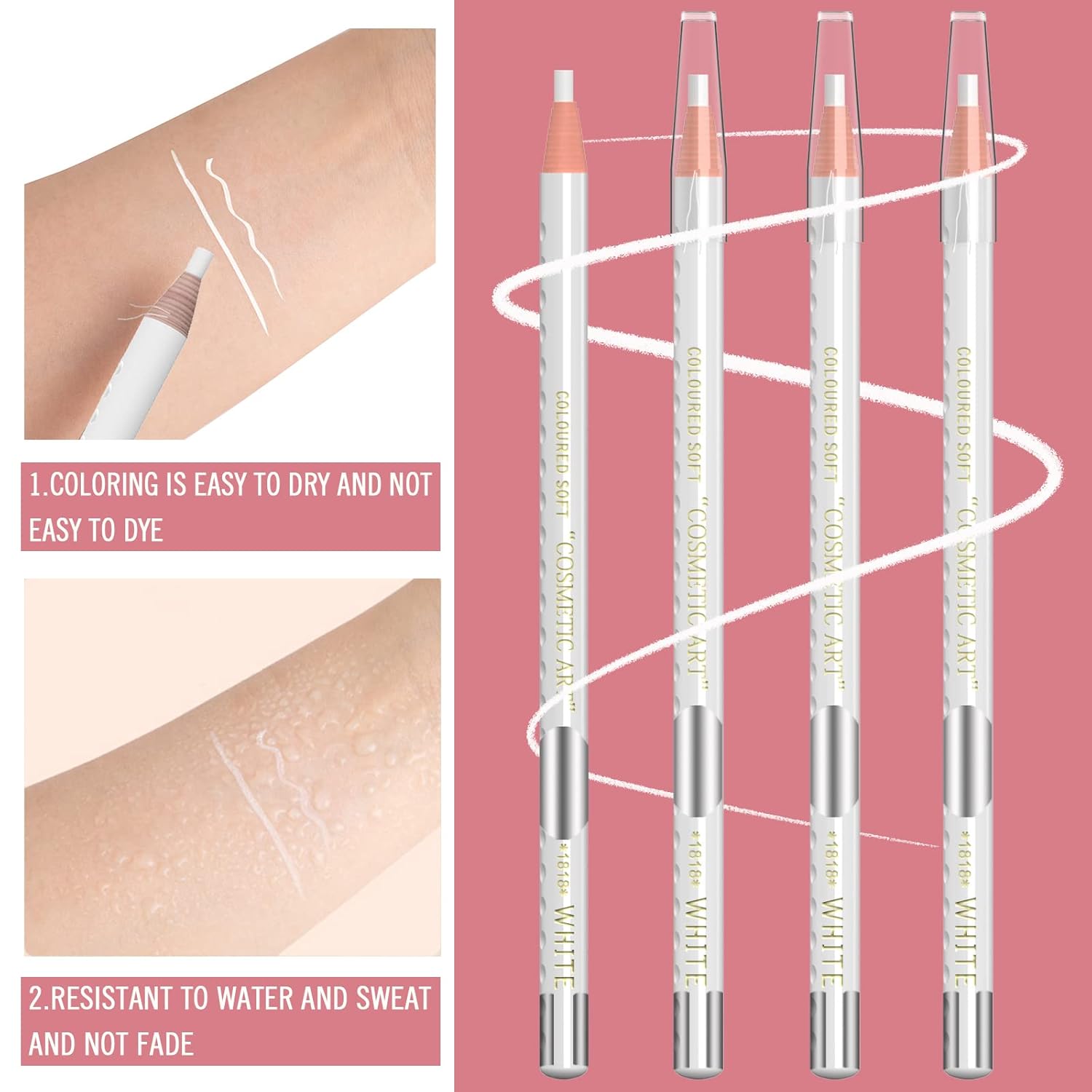 - 1.【4Advanced thrush pens】4 high quality white hard refill eyebrow pencils, including 1 eyebrow sharpener with handle and 1 pencil sharpener.