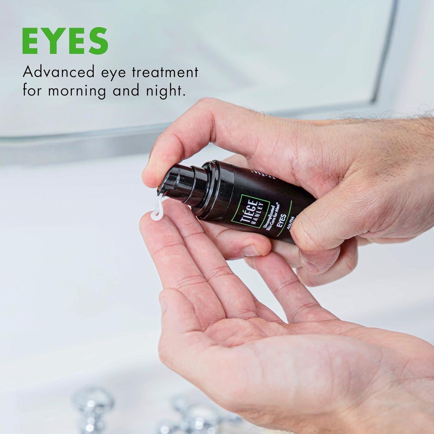 - Advanced Eye Treatment for Men: Tiege Hanley EYES delivers vital nutrients to the skin under and around the eyes. This advanced eye cream helps improve skin elasticity and diminish the appearance of wrinkles, while the combination of caffeine and peptides brightens dark areas. 0.5oz.