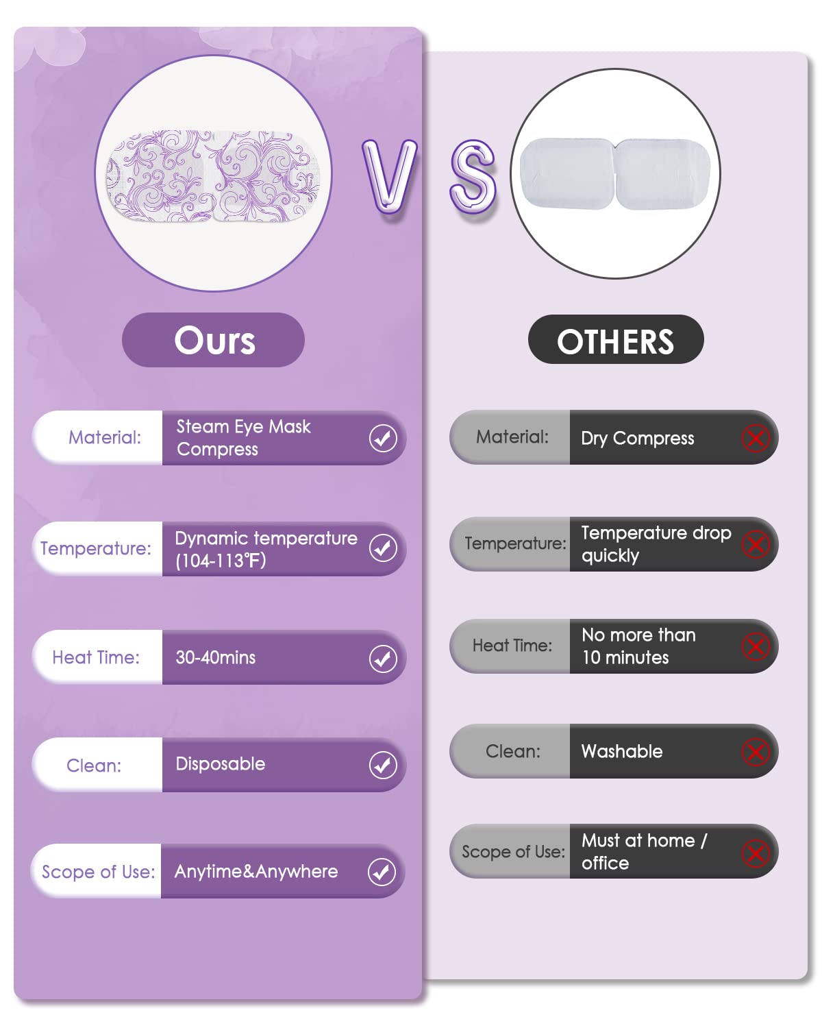- ✔DOCTOR RECOMMENDED- If you want to relieve eye strain, eyes treat dry eyes, pink eye. This moisturizing hot therapy promotes blood circulation for your under eyes, relief for migraine, Headache, Dry eyes, allergies, dark circles, puffy and itchy eyes. You will enter a good sleep accompanied the faint lavender floral scent.