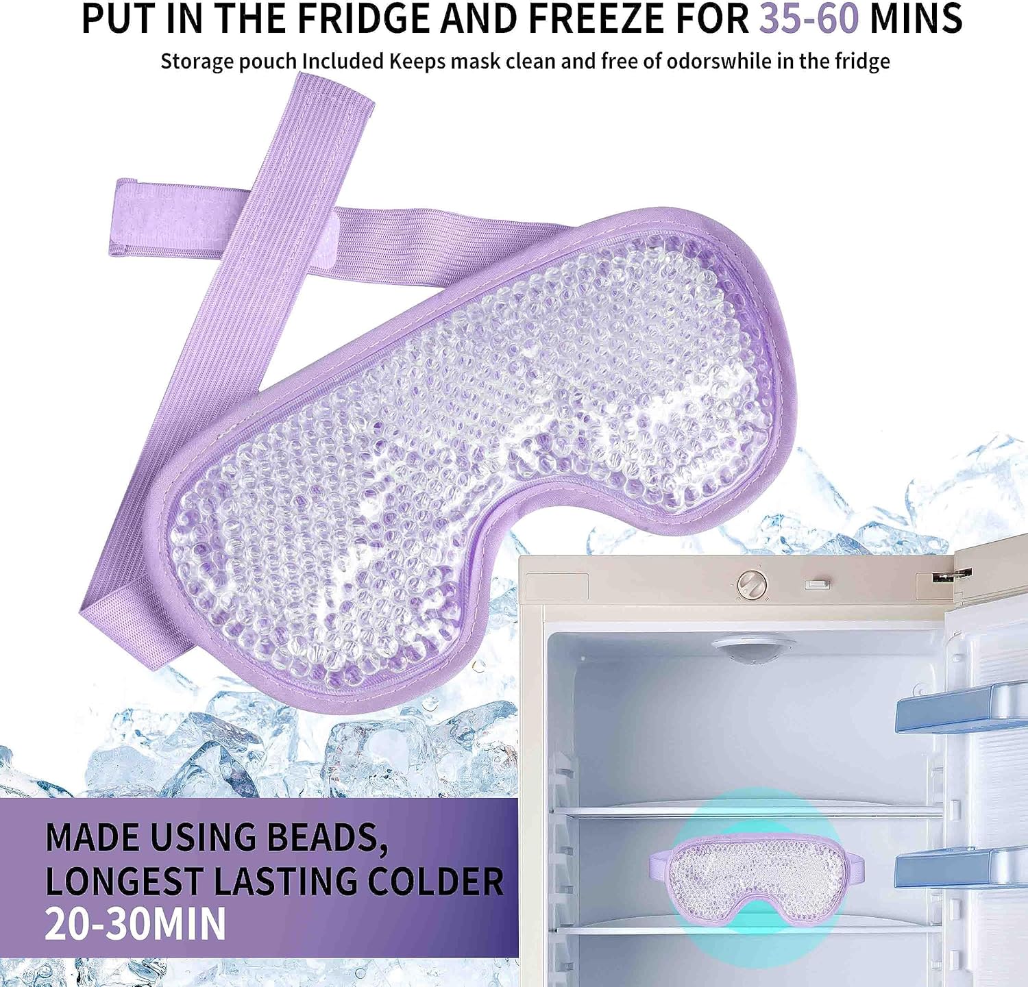 - RELIEVE DISCOMFORT: The gel bead eye mask is a quick and easy way to relieve your eye discomfort. Freeze the gel eye mask and put it on your eyes to reduce puffiness from a night of poor sleep or a late night, or to relieve tired eyes that have been staring at a computer all-day