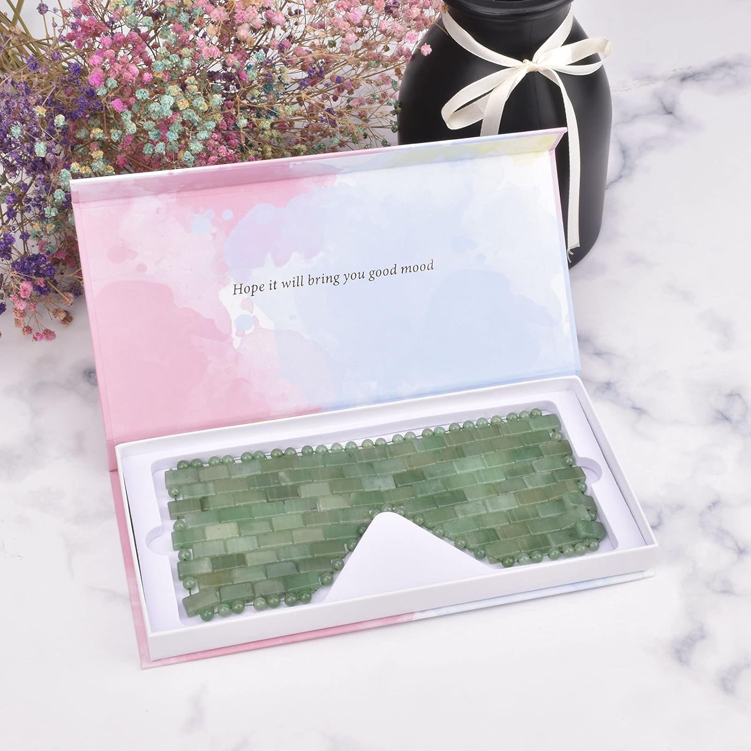 - ✤Magical effects:Natural Adventurine Jade eye mask can effectively relieve eye fatigue, promote energy flow and circulation, enhance sleep and relax muscles. Jade stone has a natural cooling effect that calms and soothes your eyes when you need to rest and lie down.