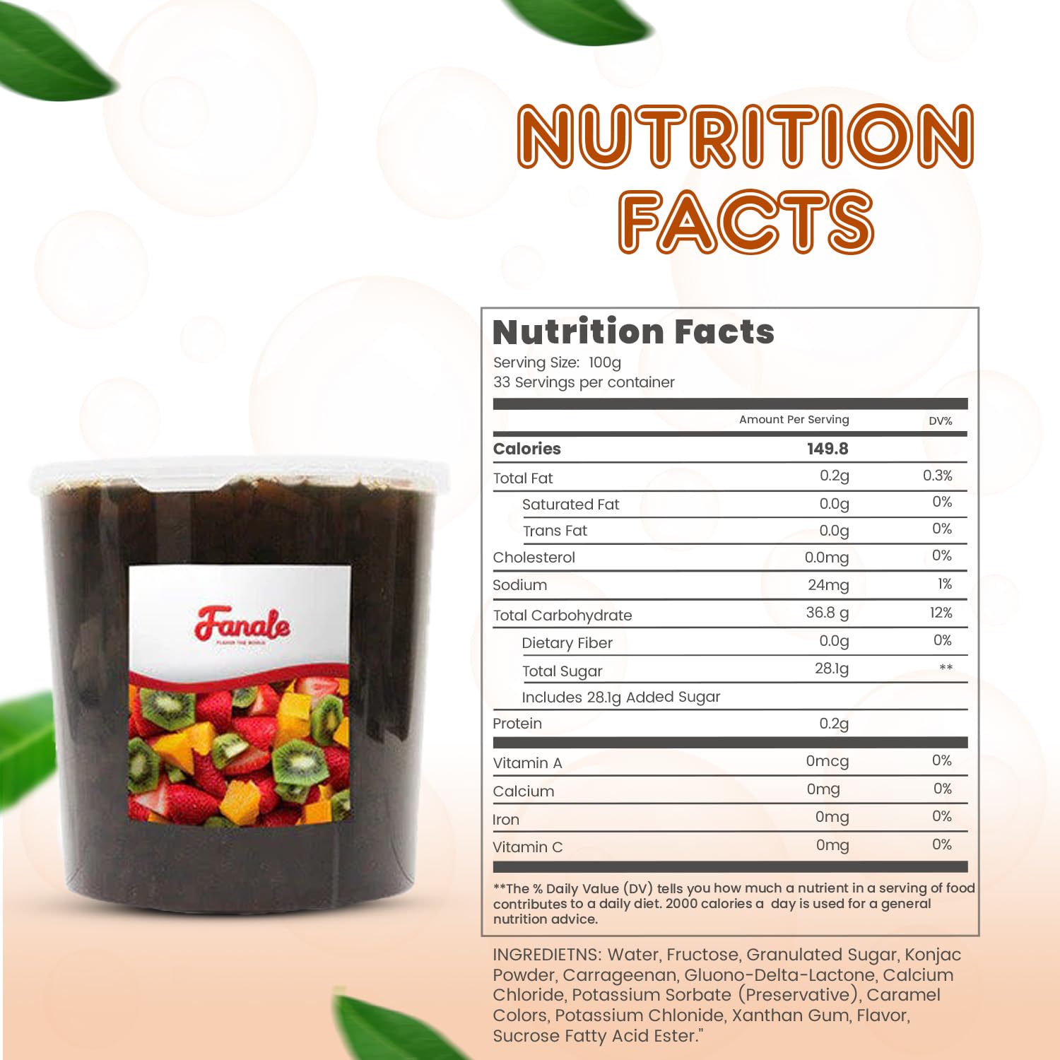 - ๐๐ฐ๐๐๐ญ ๐๐ง๐ ๐๐ฑ๐จ๐ญ๐ข๐ ๐ ๐ฅ๐๐ฏ๐จ๐ซ: Each Fanale coconut jelly boba tea variety is infused with sweet and exotic flavors that complement a range of recipes. This nata de coco jelly topping includes strawberry, lychee, blueberry, mango, sakura, green apple, coconut, Konjac, and coffee flavors, adding a distinct and delightful twist to your creations.