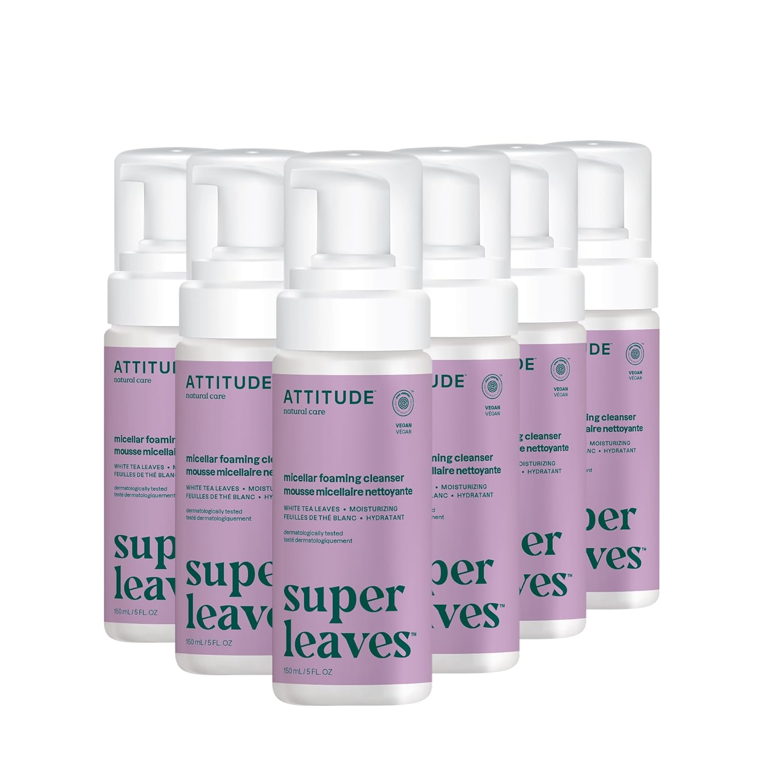 ATTITUDE Micellar Foaming Facial Cleanser, EWG Verified, Dermatologically Tested, Plant and Mineral-Based, Vegan, Coconut & Wildberries, 5 Fl Oz (Pack of 6)