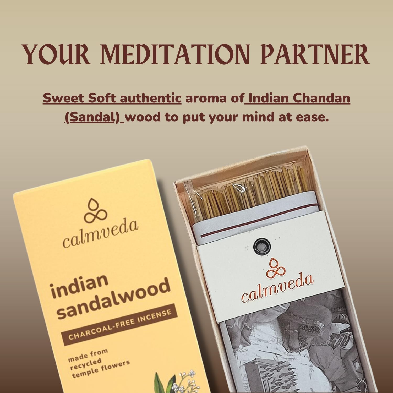 - Scent : Indian Sandalwood Incense- Charcoal Free