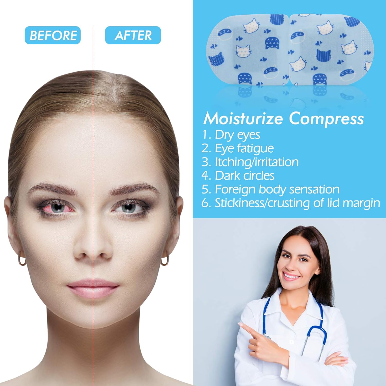 - How The Eye Mask Works: The moistness of these warm compress for the eyes helps the heat penetrate through to the muscles, and improves blood circulation around the eyes. Our eye warm compress moist heat in this way may provide better pain relief. After using the eye steam mask, moisturized and lubricated eyes will feel refreshed and rejuvenated, an effective alternative to eye drops