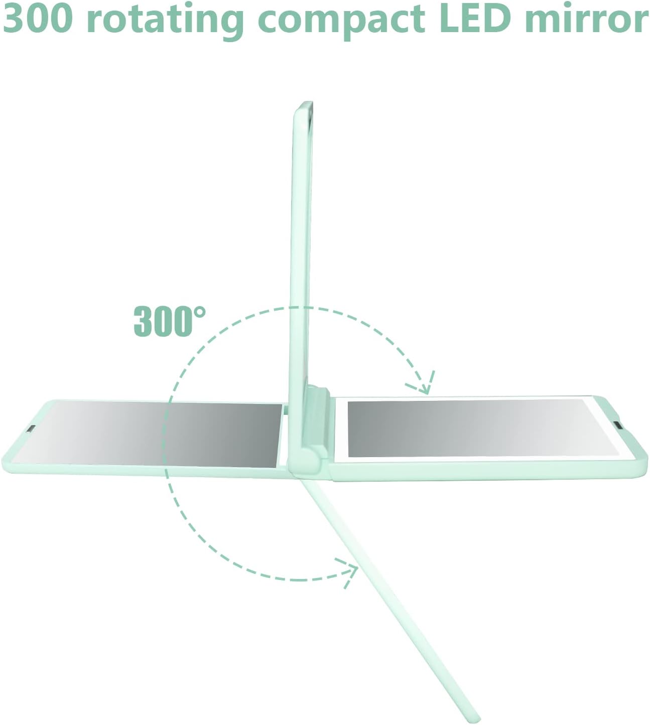 - 300°Flip Folding Travel Mirror:This lighted travel makeup mirror can achieve a 300-degree flip, so whether you want to use the magnified mirror or the illuminated mirror, you can place it at will.Can be handheld or stand on