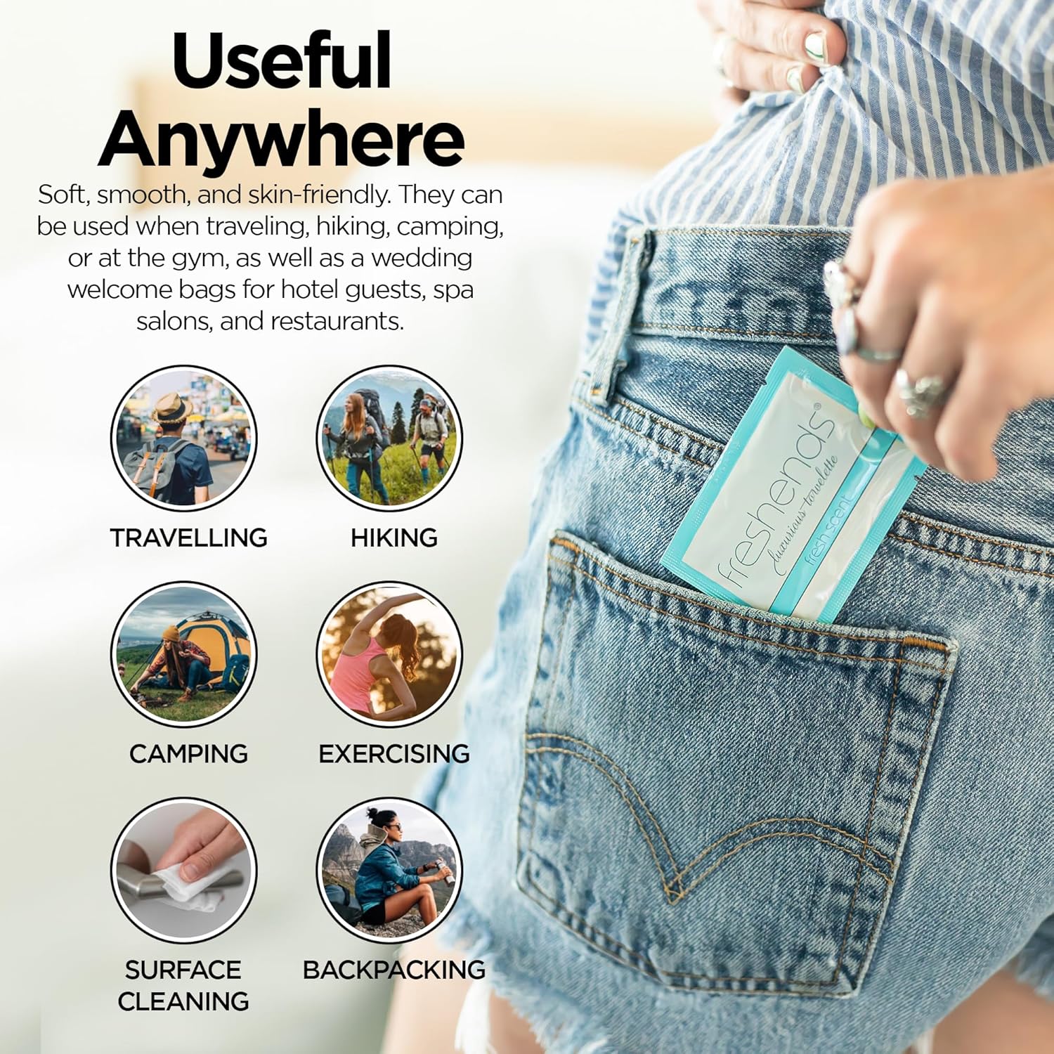 - Luxurious Freshness: Experience premium comfort, cleaniness and hygiene, by upgrading from standard toilet paper to our individually packaged fresh scent towlettes. Choose Freshends to freshen up and pamper yourself in any situation.