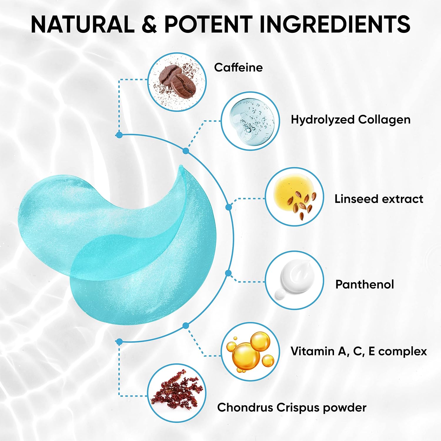 - Natural Formula: eye wrinkle patches contain collagen that supports skin firmness & assists with imperfections caused by aging. Caffeine helps energize dull & tired skin leaving it tight & fresh.