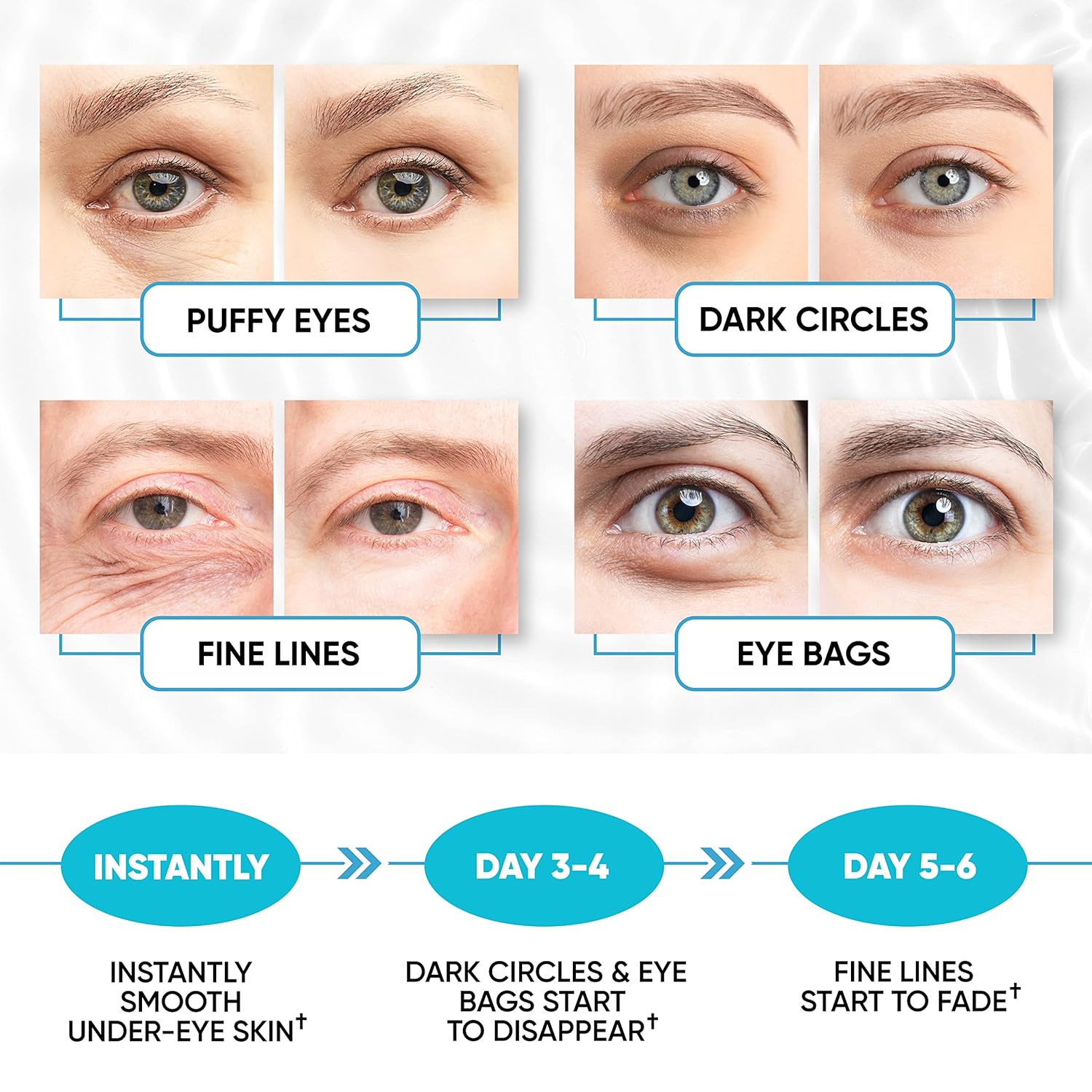 - Soothing Support: under eye pads support healthy eyes without signs of tiredness. Caffeine eye patches help calm & refresh the skin around the eyes while diminishing puffiness, dark circles, under eye bags.