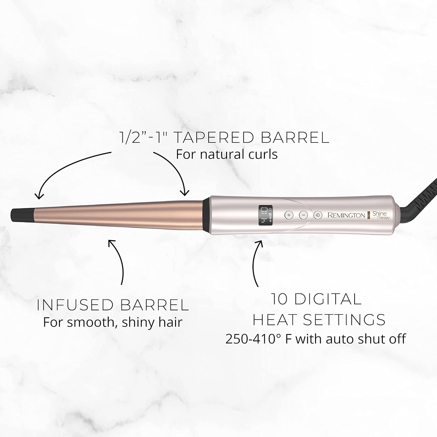 Remington Shine Therapy Argan Oil & Keratin Infused ½-1 Inch Tapered Curling Wand for Natural Curls, Includes Heat Glove