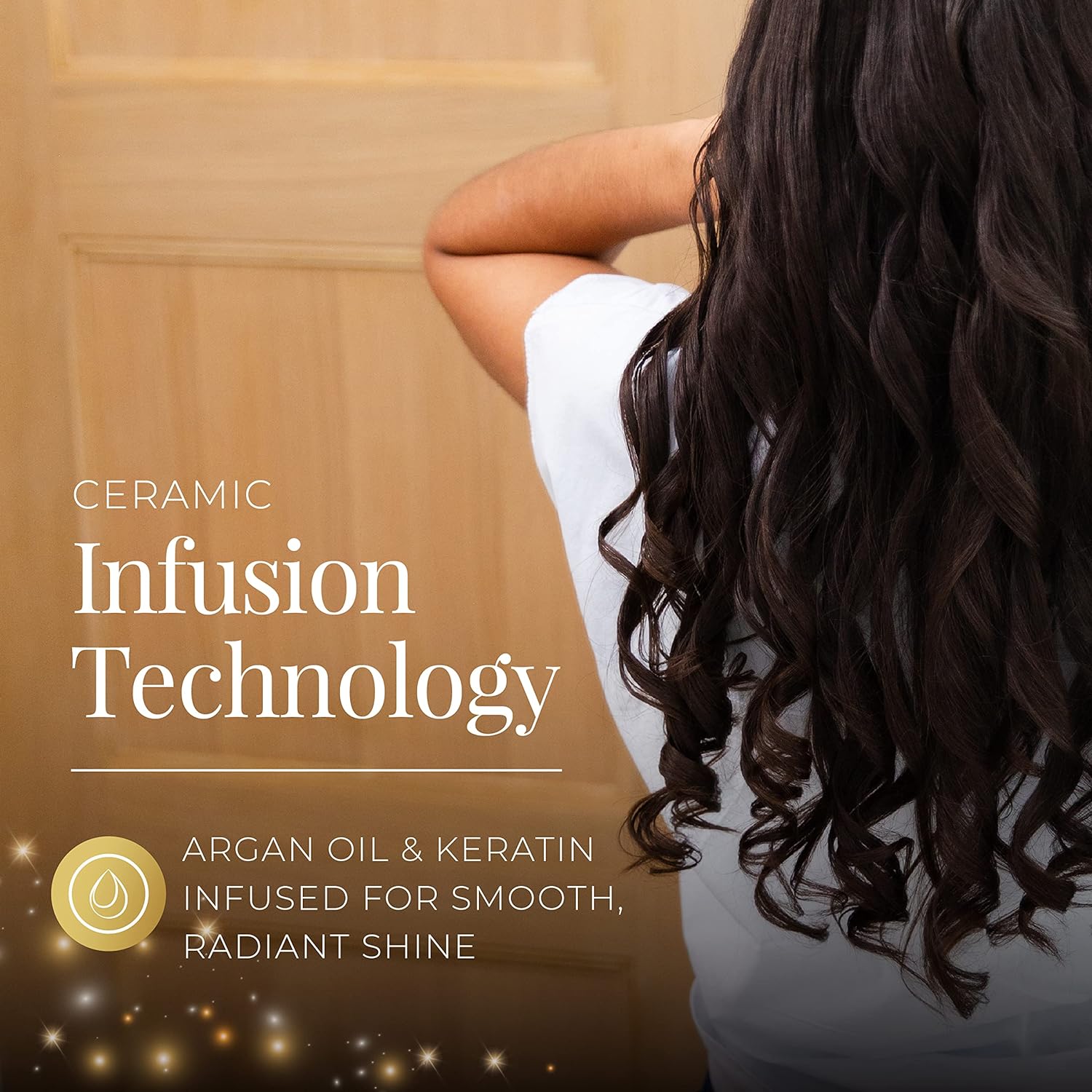 - CERAMIC INFUSION TECHNOLOGY: The infused barrel, sized ½" to 1", combines antioxidant-rich Argan Oil and protein-rich Keratin for even heat distribution, ensuring a smooth, radiant shine with every use.