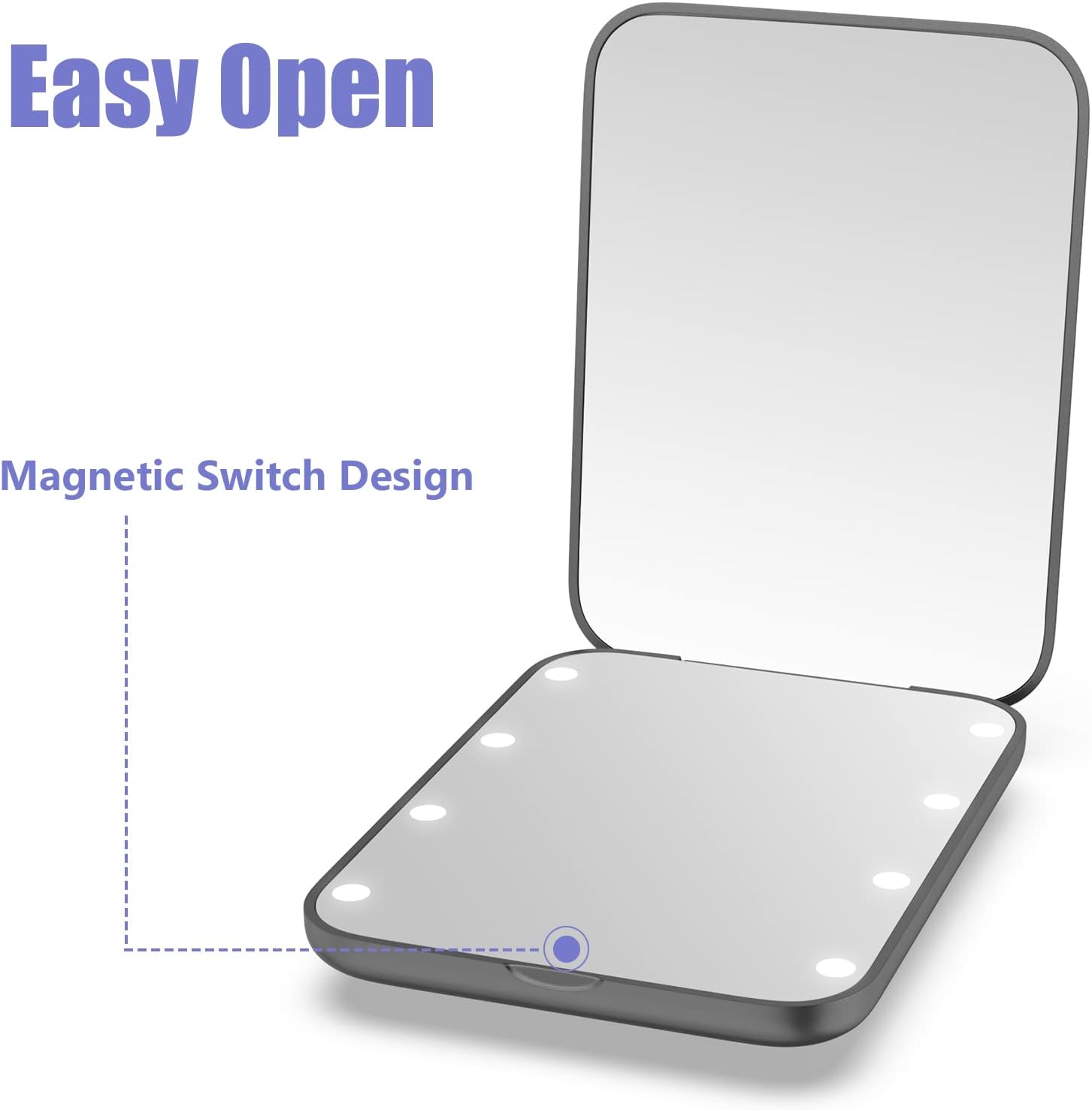 - Light On/Off with Mirror Open/Close:Unique design, the opening and closing of the mirror can control the light on and off at the same time, you no longer need to worry about forgetting to turn off the light