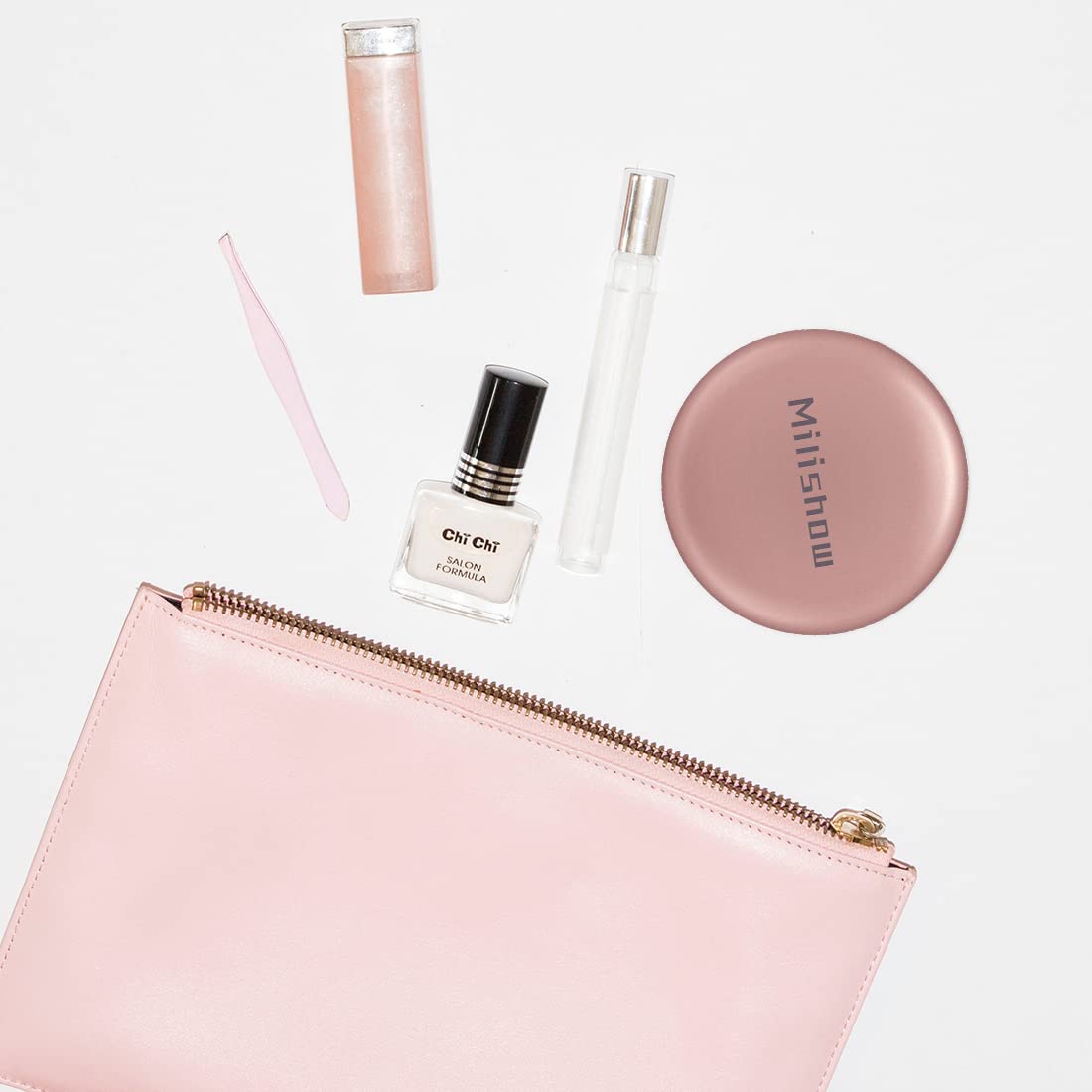 • 【Easy to Use & Compact Size】: Double click to turn on the light; hold and press to adjust the brightness as you need; click once to turn off when you don’t need light. Our LED travel makeup mirror is made of high-quality ABS plastics. The size of the compact mirror: 3.5*0.59in; Weight: 3.25oz can be stored in a handbag, purse or pocket.