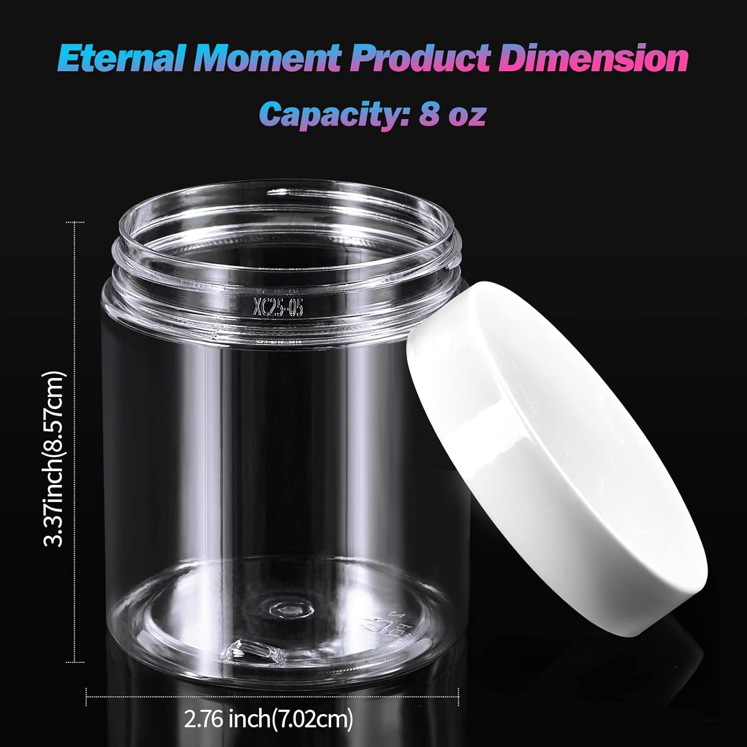 - ★【PERFECT SIZE】: SIZE:2.76 inch diameter by 3.37 inch tall. Capacity: 8 OZ(240ml). Portable to take and fit perfectly into your tote bags, backpack or gym bag. You can take them go anywhere. Eternal Moment cosmetic containers can also be stored on a shelf or displayed to promote a professional ambiance.
