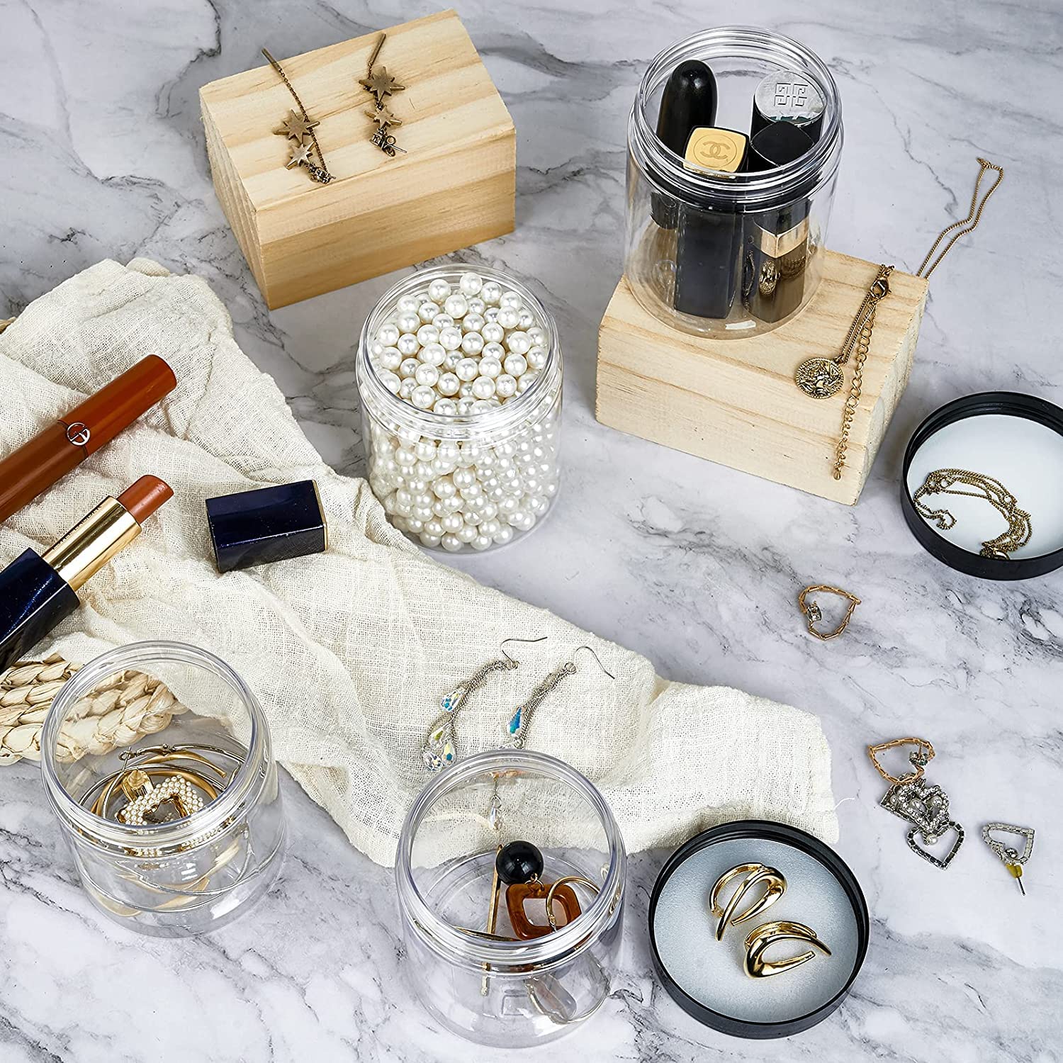 - ★【LEAK PROOF AND AIRTIGHT】: Each Jar comes with a screw-on lids with foam liners which creates an airtight seal when the lid is securely screwed onto the container. You do not need to worry about leakage, especially when you carry them in your bags. Plastic container jars with white lid and transparent clear bottom, lovely in appearance. See-through plastic jars display your contents.