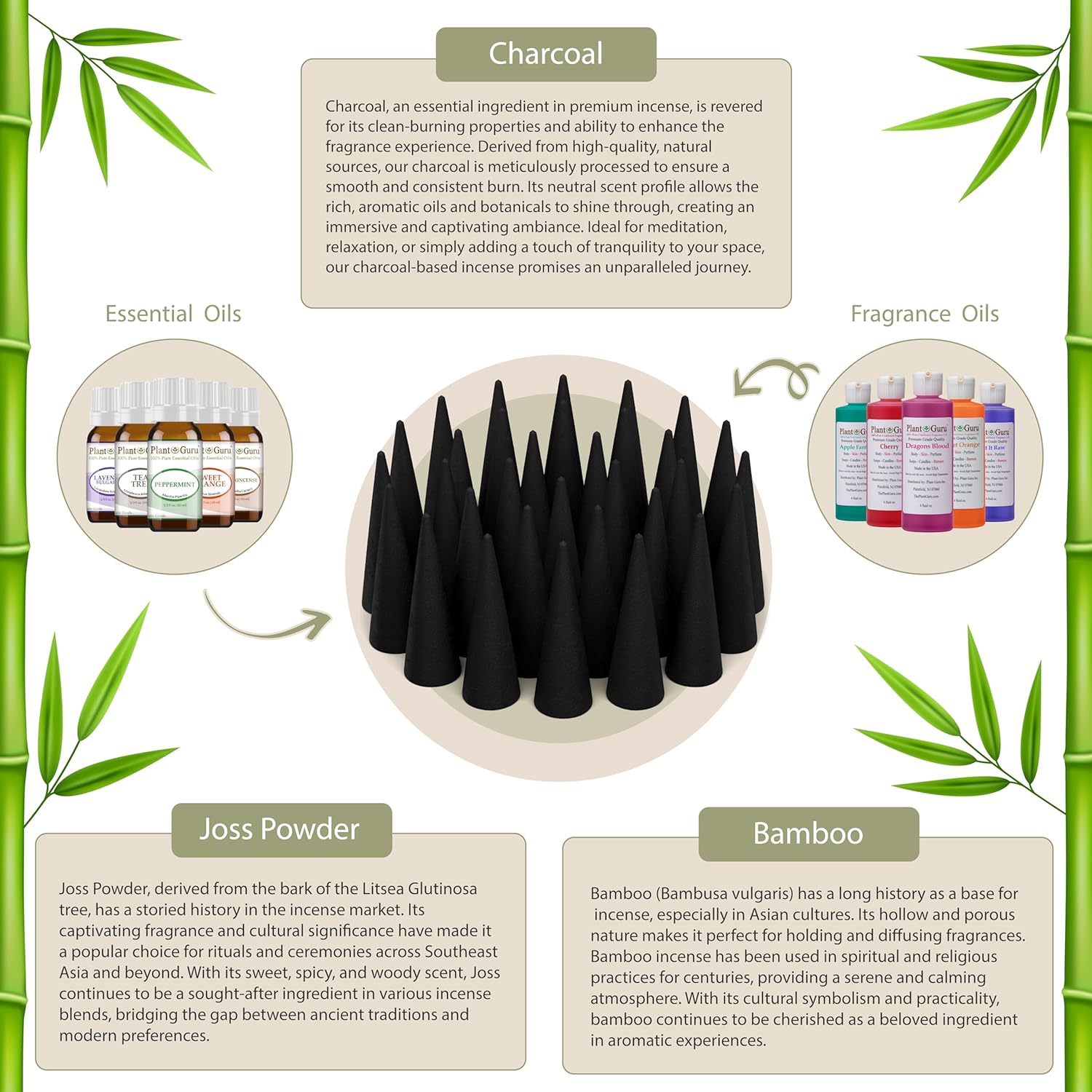 Frankincense Charcoal Incense Cones 2" BACKFLOW - 60 Pack Bulk - Natural Scented Cones Handmade Hand Dipped