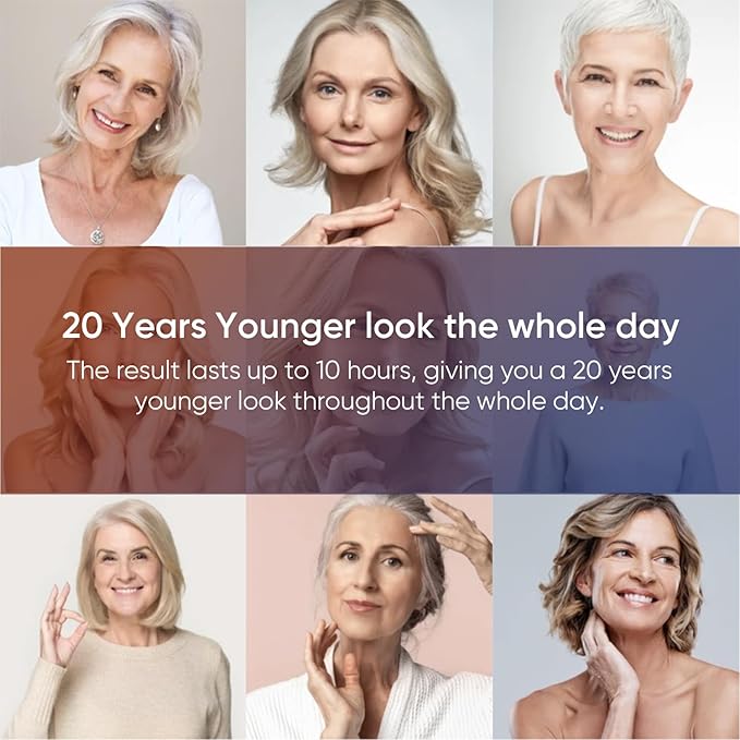 - Fast-Acting Results: See noticeable results in just 60 seconds and achieve a look up to 20 years younger in only 10 minutes. Enjoy the confidence of a rejuvenated appearance that lasts up to 8-10 hours, ensuring you stay radiant throughout the day.