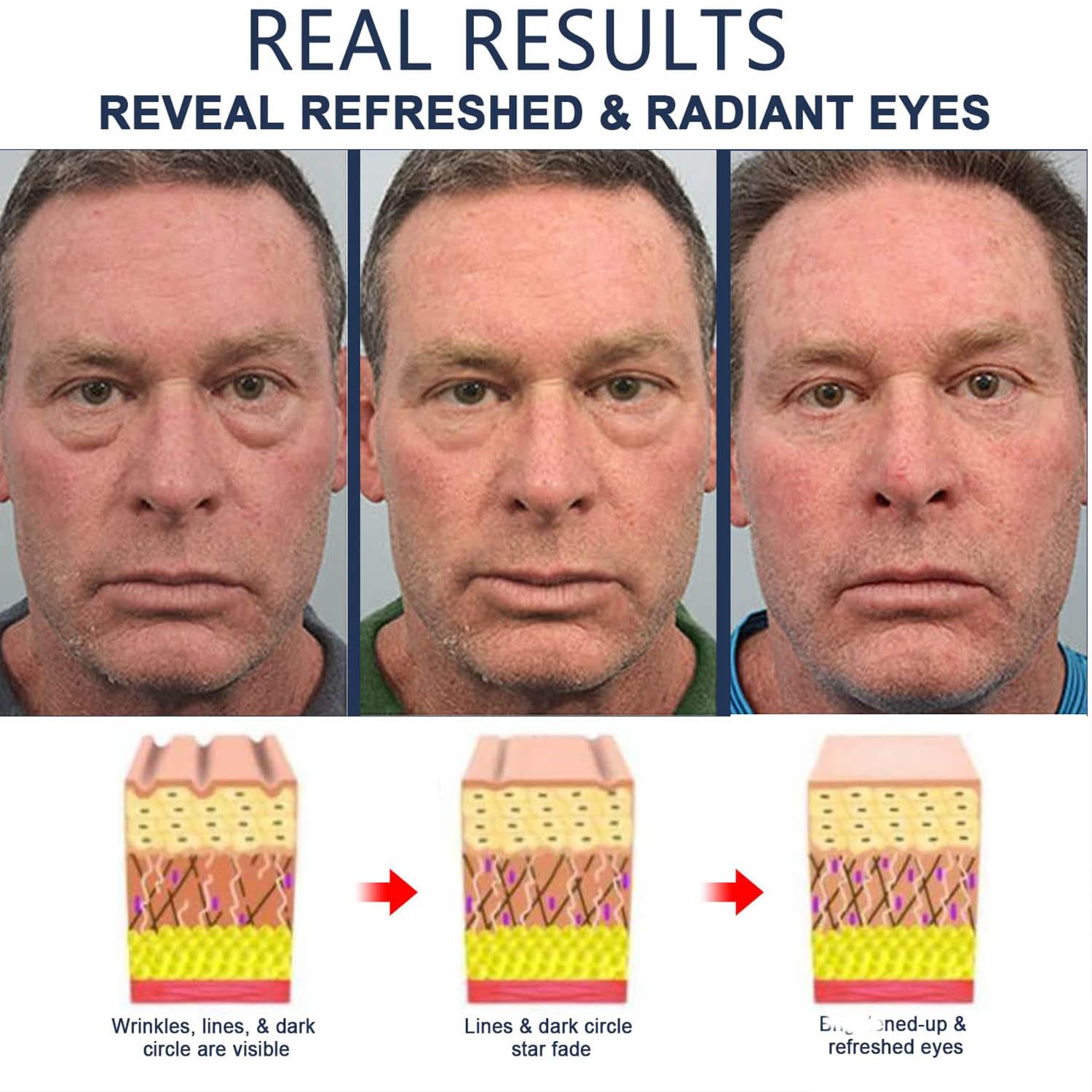 - [Suitable for all Skin Types] The Eye Cream for Dark Circles and Puffiness is transparent, so no one will know you are using it, and it is easy to apply, continue to use the Eye Cream. Show the unique charm of men.
