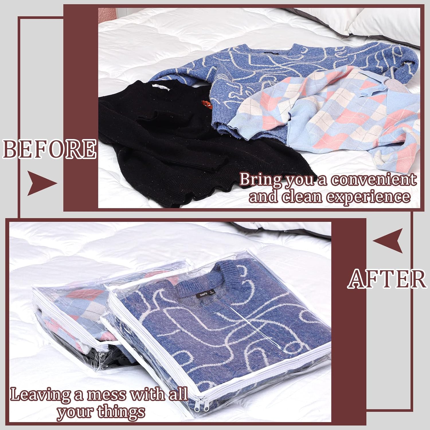 - Versatile Uses: these sweater storage bags can be applied to store your sweaters, fabrics, quilts, sheets, blankets, cosmetics, pillows, or whatever else you want to store in a practical and space saving way