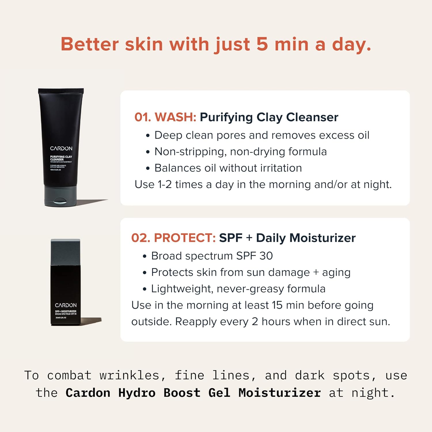 CARDON Daily Skincare Set for Men | Face Moisturizer with SPF 30 & Clay Face Wash | Best Gift for Men