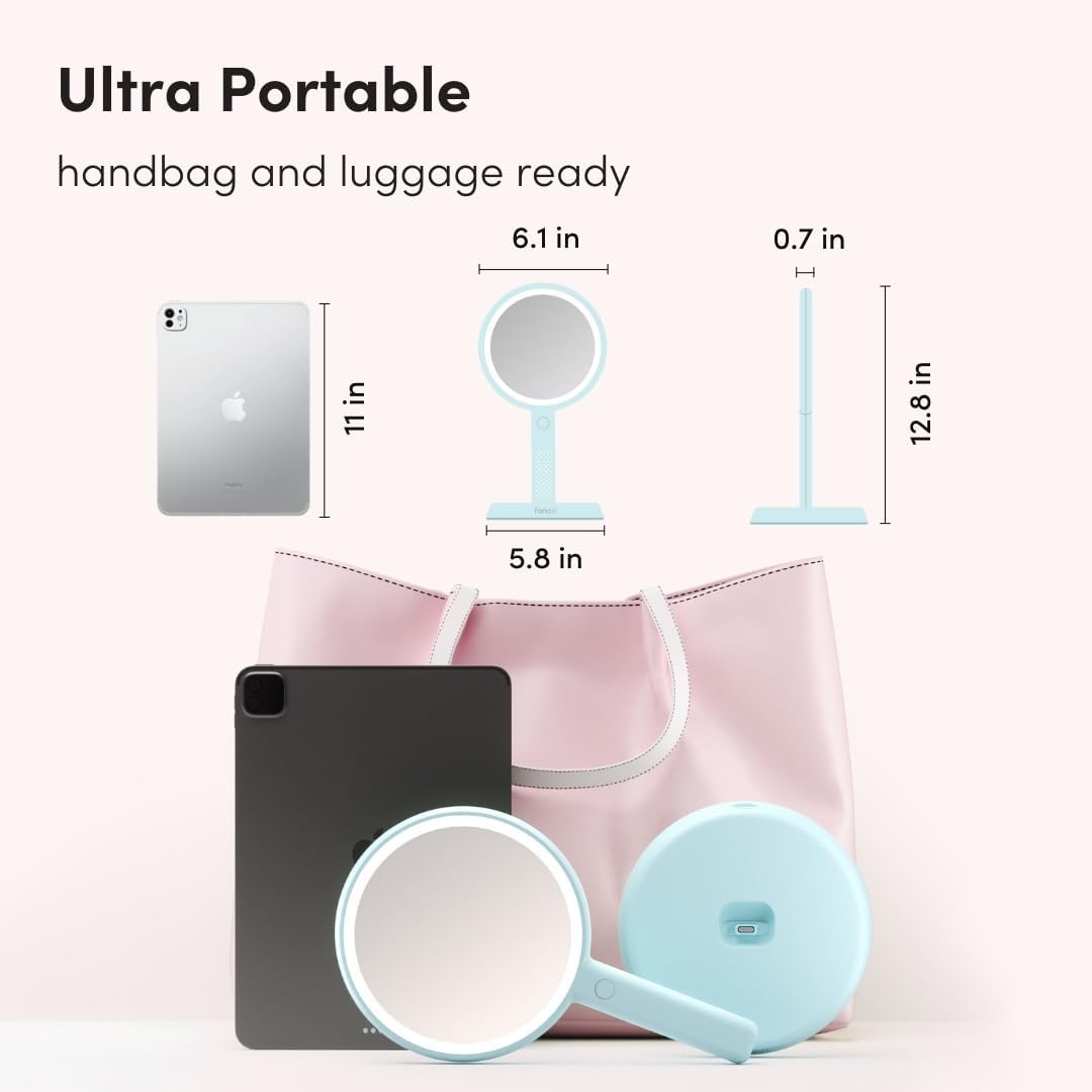 - Handheld & Hands-Free – Use Cami as a handheld mirror or attach it to the included stand for a vanity setup. The stand tilts up to 30° for hands-free, precise makeup and grooming.