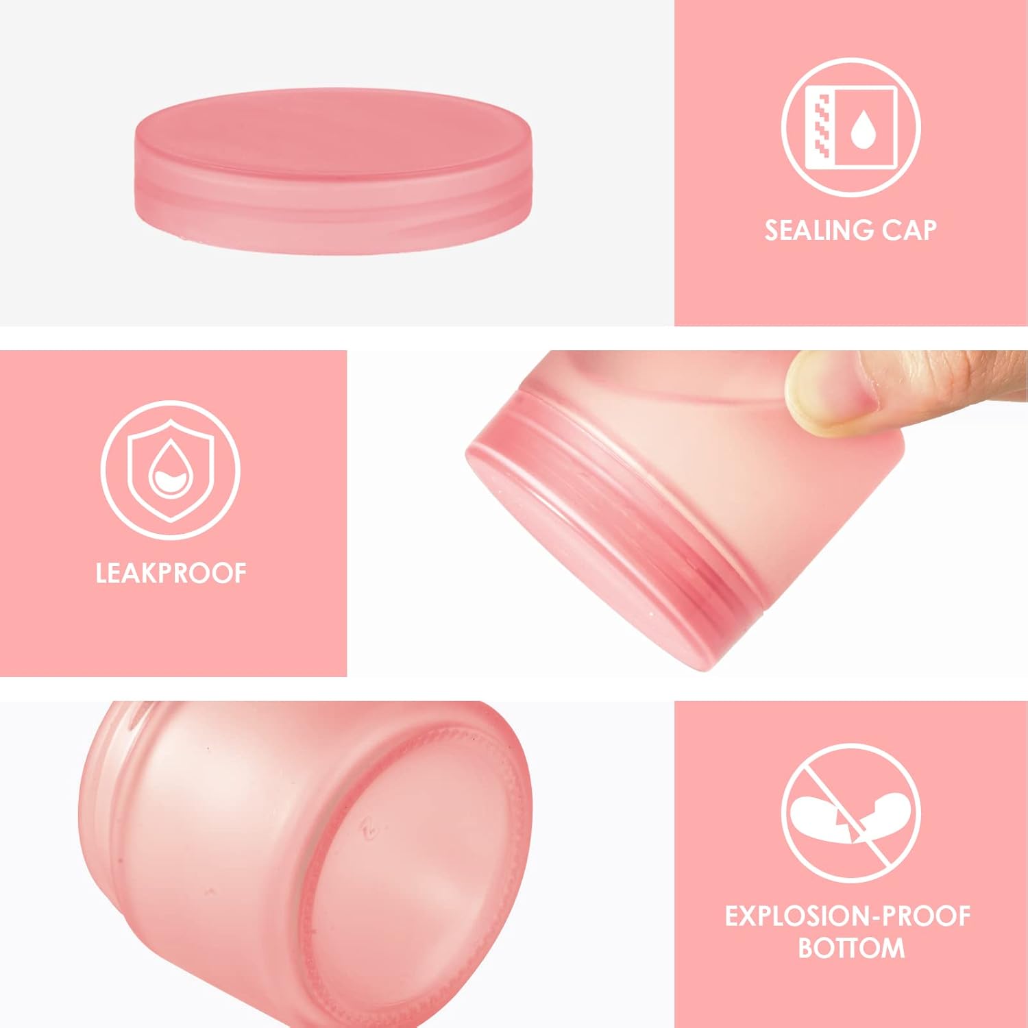 - Airtight Leak Proof: Don't worry about getting your cosmetic bag wet! The pink frosted glass jar's tight thread fits perfectly with the glass bottle cap to protect the lotion and essential oil from leaking. Our empty airtight glass jars can be reused to reduce waste