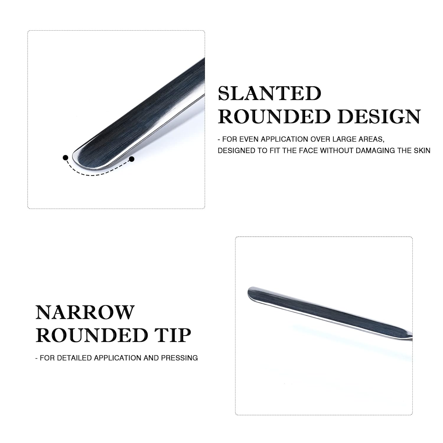 - Multi-functional Makeup Spatula: The stainless steel foundation spatula is designed with a flat, rounded tip for different blending needs and a comfortable grip. You can use this makeup spatula Korean to achieve smooth, lightweight makeup that won't build up, creating a lighter complexion