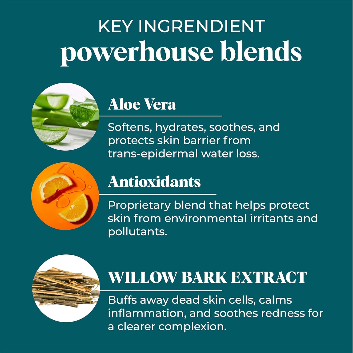 - SOOTHES AND EXFOLIATES NATURALLY – Aloe Vera hydrates and calms, while Willow Bark Extract gently exfoliates dead skin cells to help clarify pores and refine texture. Antioxidants and Vitamin E support barrier health and help reduce visible redness and irritation.