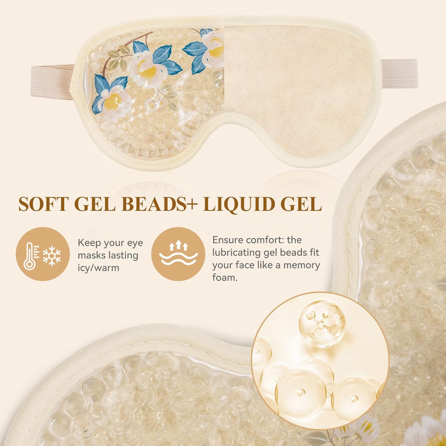 - 【More Options for Cold Eye Mask】The gel eye mask with eye holes allows you to use your phone, read books, watch TV, and work. Another gel beads eye mask has a cool plastic side and a super soft fabric side. The plastic side can be colder or warmer than the plush side, providing you with various levels of cold/heat. The reversible dual-sided design allows you to choose your preferred side.