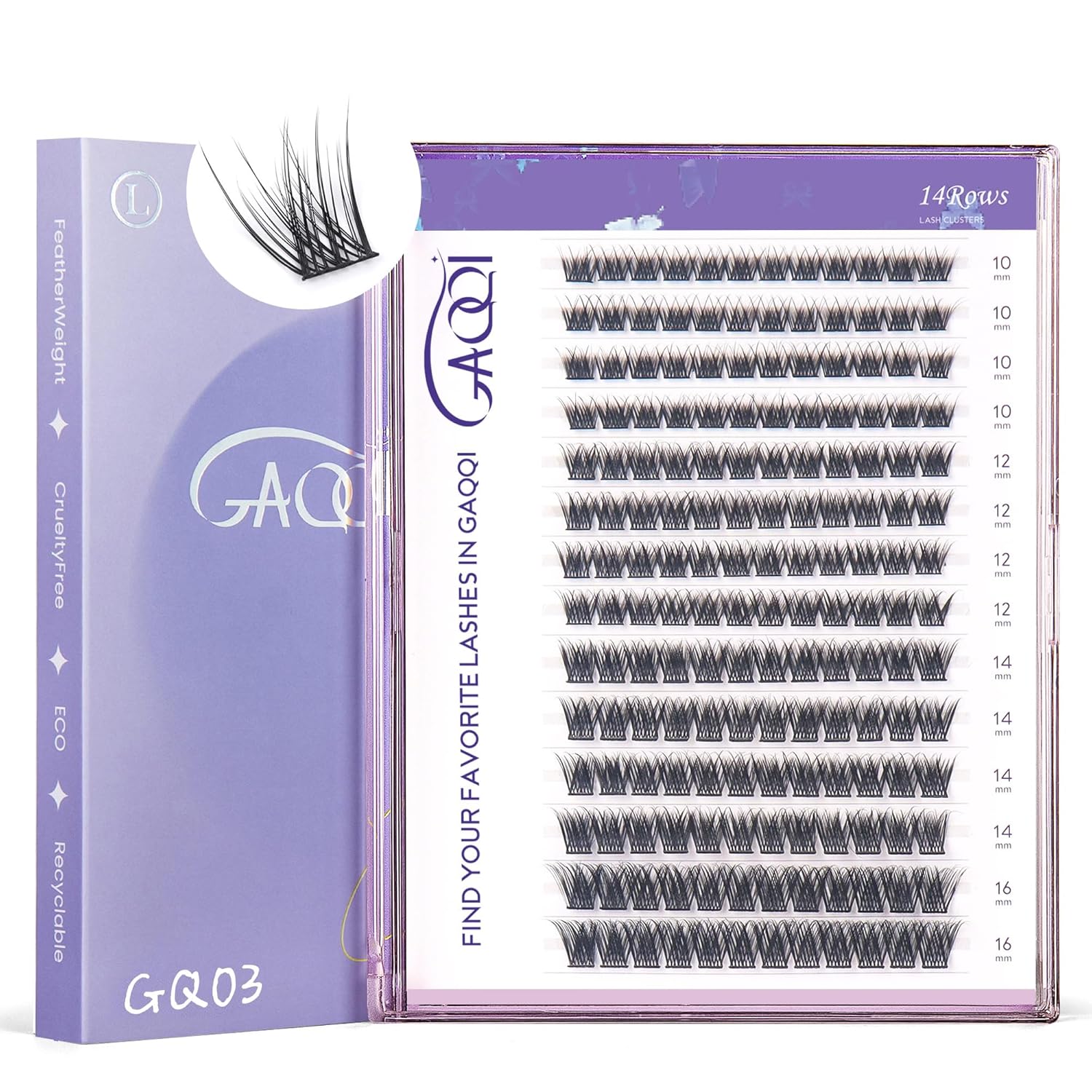 - 【A Perfect DIY lash Extension】GAQQI cluster lashes are thoughtfully designed to create a natural and charming appearance. With 10-16 different lengths and C/D curl, you could create any style you want at home, such as cat eye, foxey eye, open eye, dool eye, and wispy natural look.