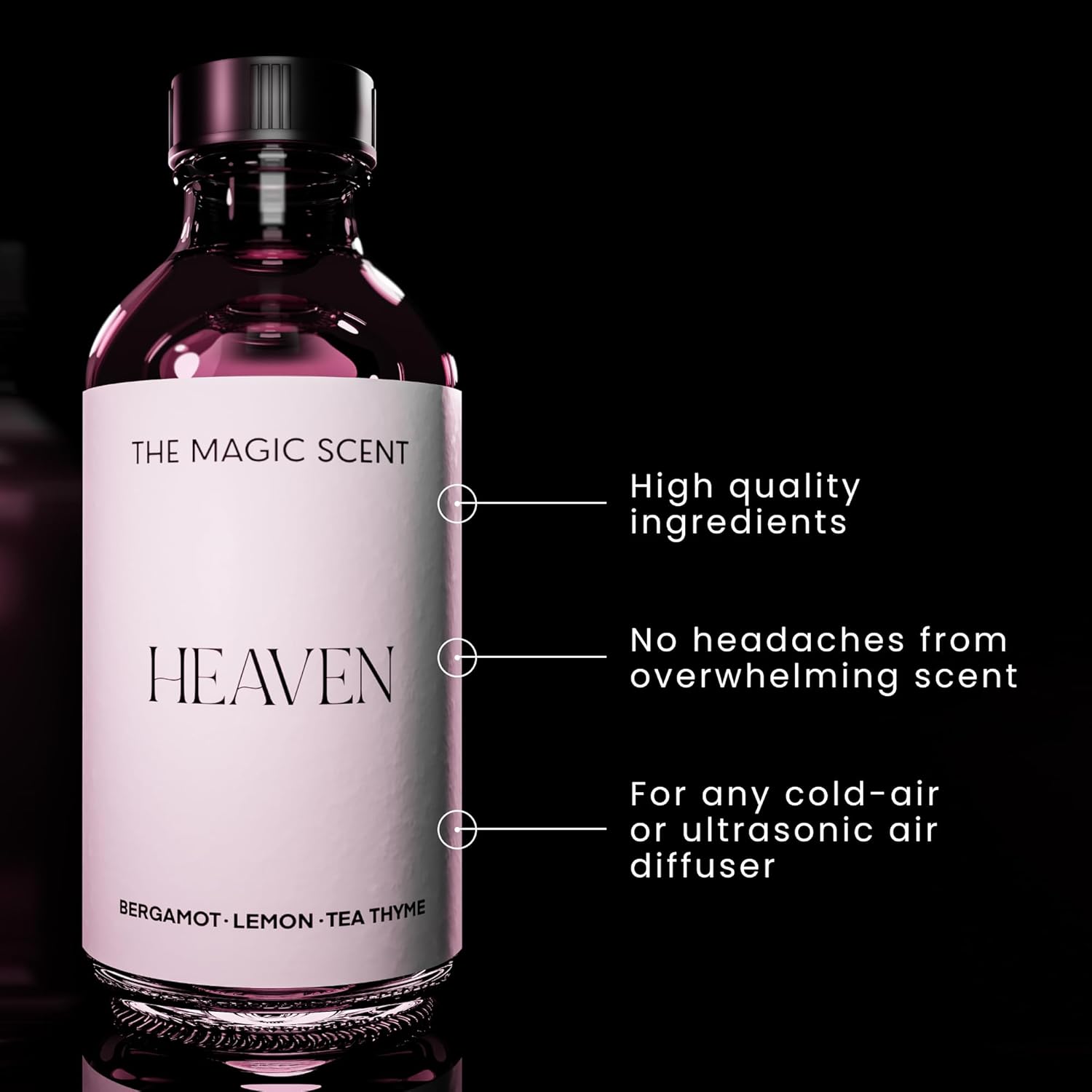 - PREMIUM BLEND OF NATURAL DIFFUSER OIL SCENTS - Heaven is expertly made in Miami, USA. It delivers a unique blend of bergamot, lemon, & tea leaves, plus hints of jasmine, sandalwood, amber, and musk..