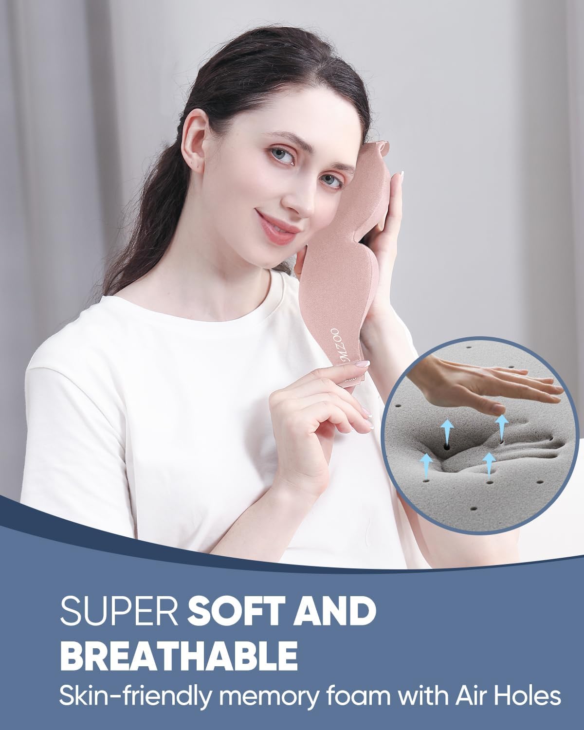 MZOO Luxury Sleep Eye Mask for Side Sleeper Men Women, Zero Eye Pressure 3D Sleeping Mask, Light Blocking Patented Design Night Blindfold, Soft Eye Shade Cover for Travel, Pink
