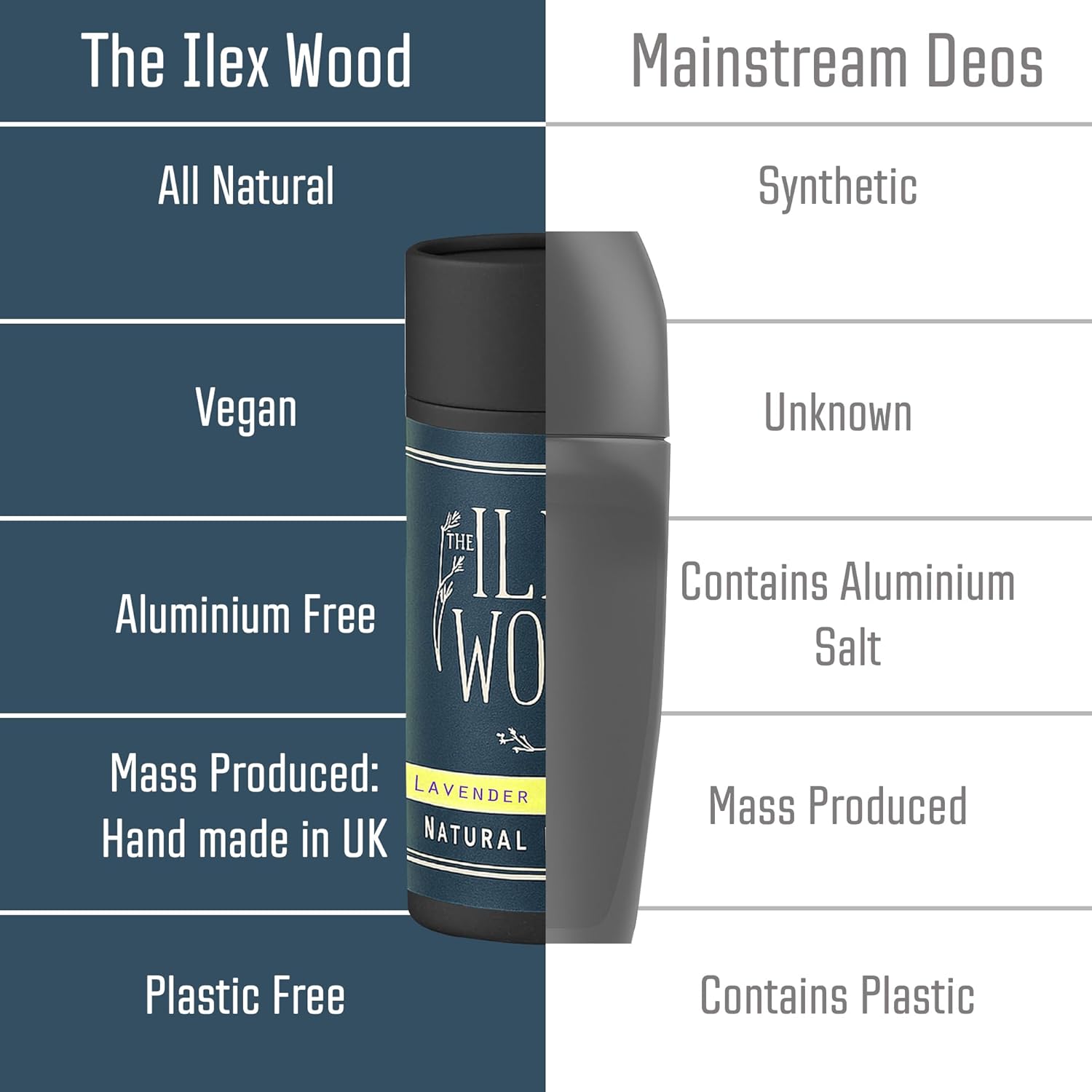 - EXPERIENCE the pure fresh scent of lemon and lavender in our natural deodorant, perfect for a zesty start to your day. The Ilex Wood Lavender Lemon deodorant combines floral calm with citrus brightness. Go green with an organic deodorant for women by The Ilex Wood, handmade in small, thoughtful batches.