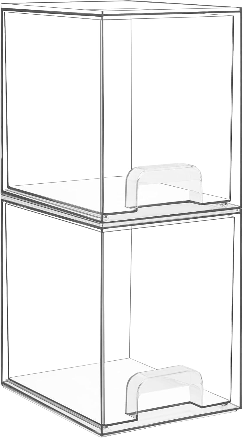 - [Stackable Design] Come with 2 drawer storage organizers, each organizer measures 7.5"D x 6"W x 7.6"H. Vertical storage will save a lot of space. You can put other objects on top of acrylic bins to make your countertop and cabinet space more tidy. It can also be stacked with Vtopmart storage drawers of other sizes.