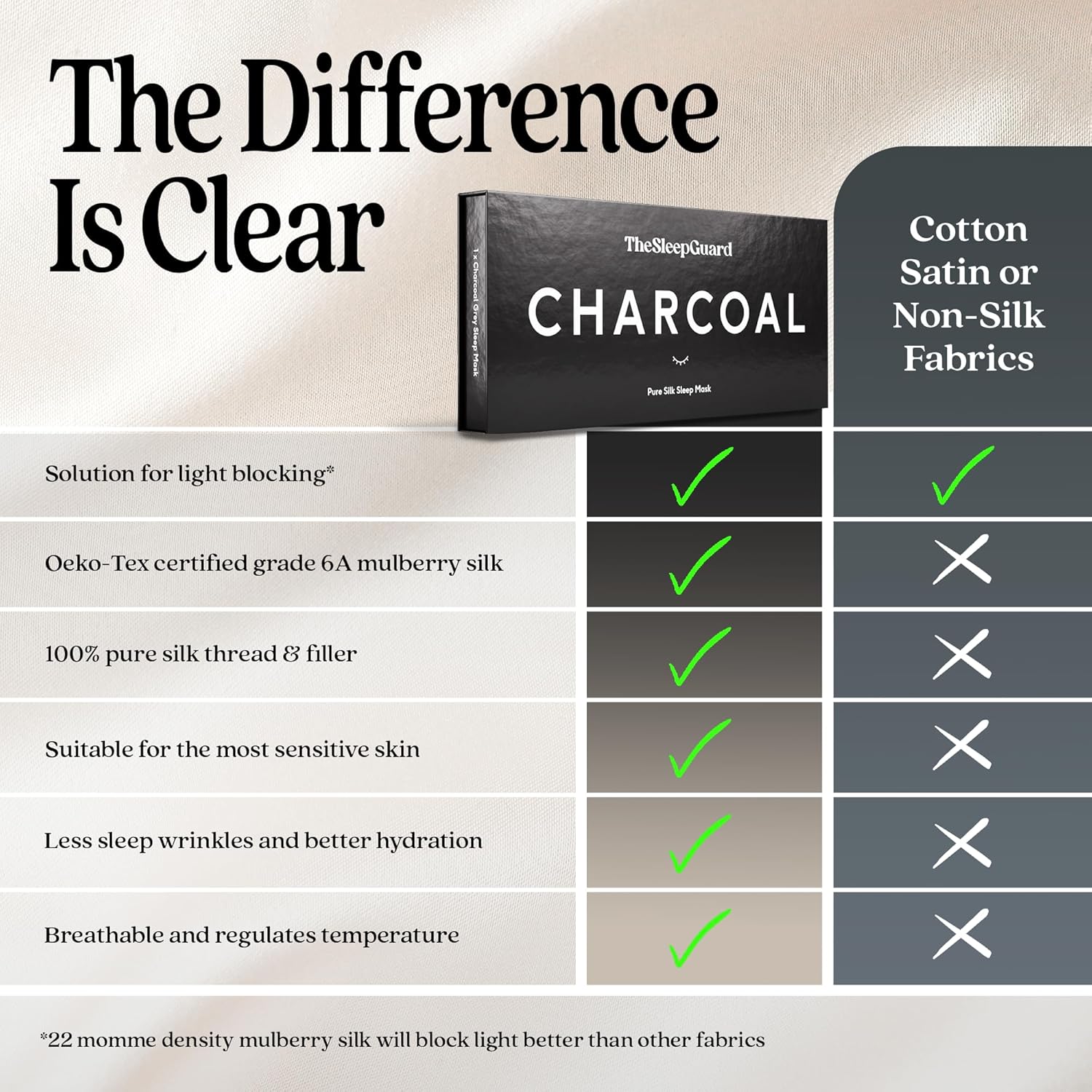- ✅ INVEST IN YOUR SLEEP - Experience TheSleepGuard difference with our luxury sleeping masks. Crafted from the highest grade 6A Mulberry silk at 22 momme and certified by Oeko-Tex to ensure you sleep soundly. Remember, better sleep leads to a better you.