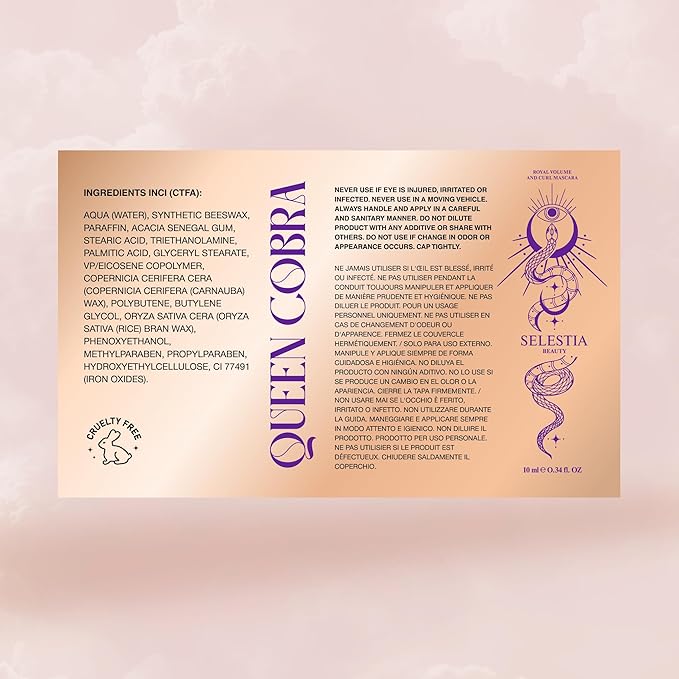 - Discover the "killer" Curling Effect: The lash-loving formula of the Royal Volume and Curl Mascara "Queen Cobra" provides a curling effect to your lashes, lifting them up and giving them a beautiful, curled appearance.