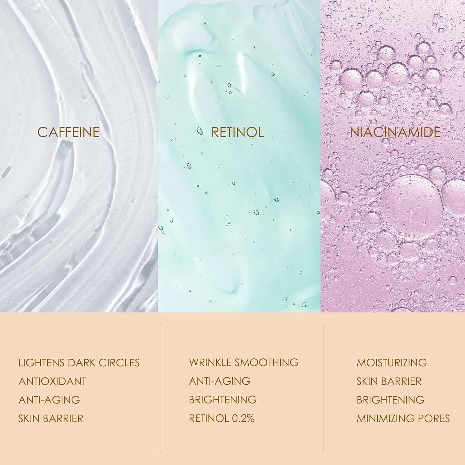 - REDUCE DARK CIRCLES: Under Eye Cream for Dark Circles is enriched with 5% caffeine and is adept at reducing the visibility of dark circles. For optimal results, it's suggested to apply it both in the morning and evening every day for at least 30 days.