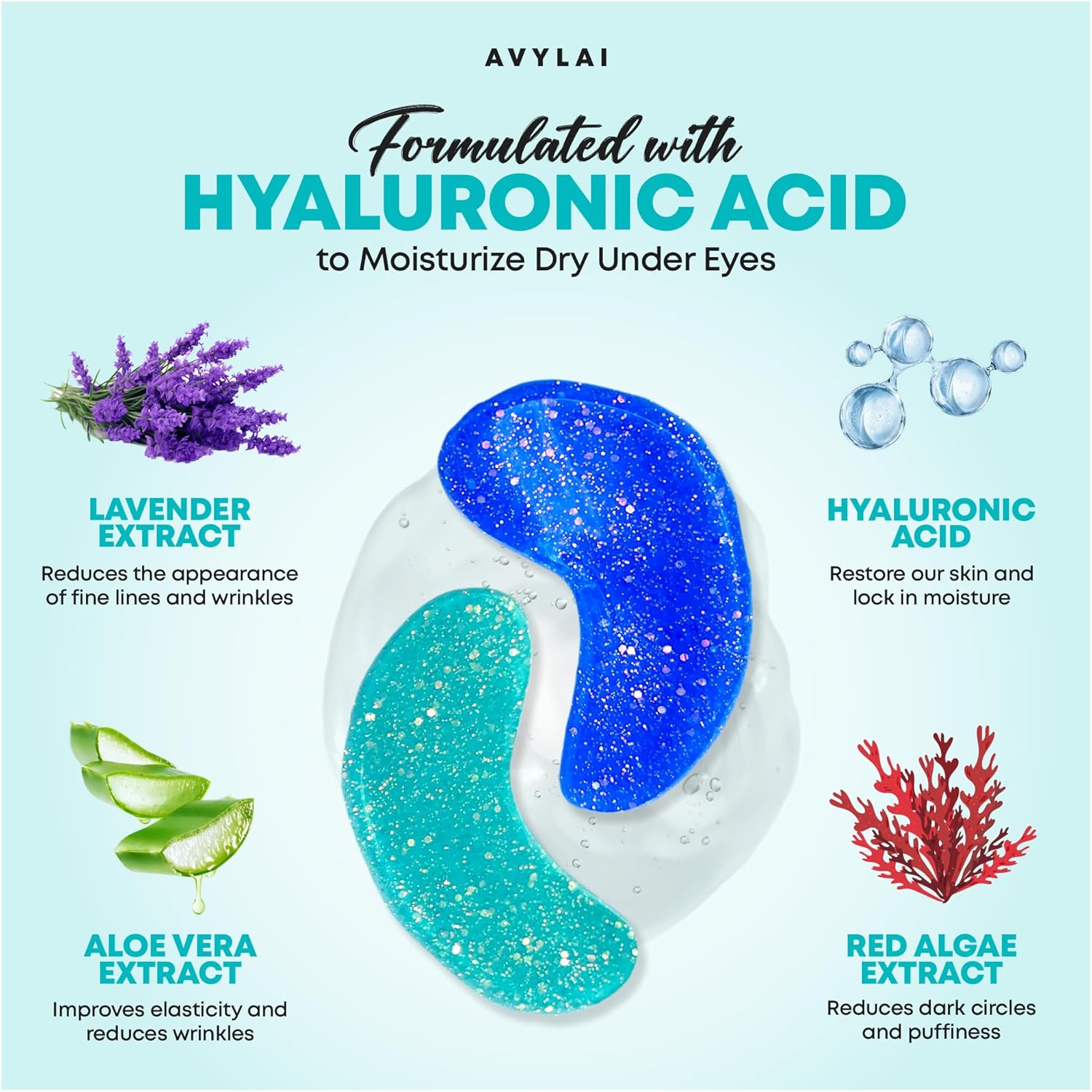 - Under Eye Patches for Puffy Eyes and Dark Circles: Avylai Collagen Eye Mask helps maintain the moisture of the skin and prevents dryness and dehydration to ensure proper hydration within the eye area. Proper hydration will reduce the appearance of Dark Circles and puffy skin, as well as prevent it from showing signs of wrinkles.