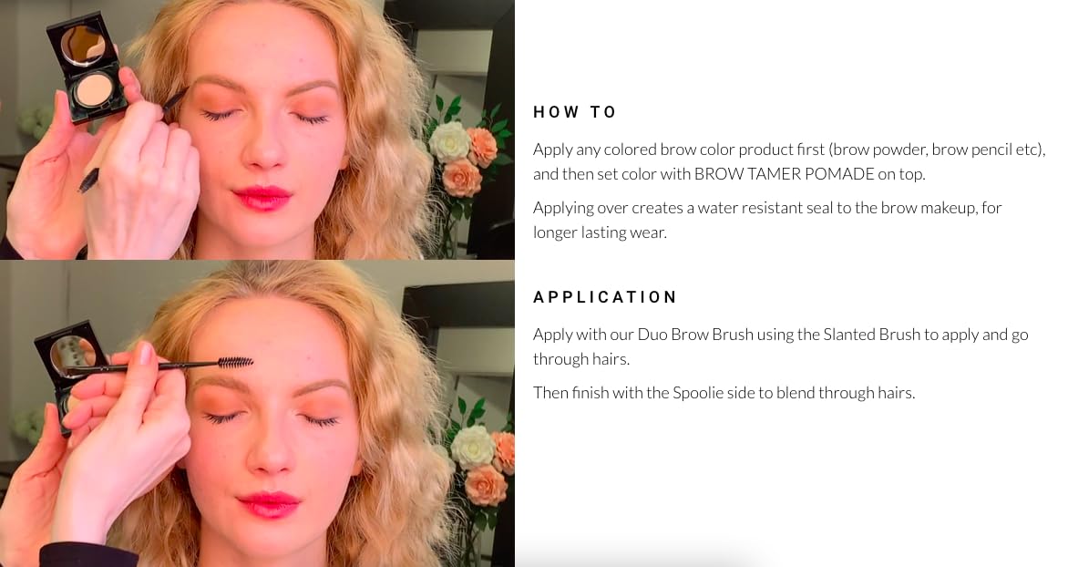 - HOW TO USE: Use alone to groom and shape brows. Apply after brow makeup. Does not change brow makeup color. Can also be layered with our Clear Brow Gel applied before Brow Wax Pomade for extra hold. Easy to apply with our elke Duo Brow Brush. Apply with the angled brush to brow hairs. Blend with the soft spoolie brush. ADD TO CART>