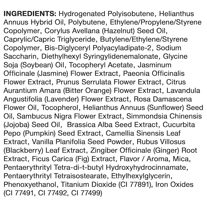 - BENEFITS: Infused with fruit extracts and vitamin E to lock in moisture while softening and nourishing lips. The non-sticky formula makes it ultra comfortable to wear all-day