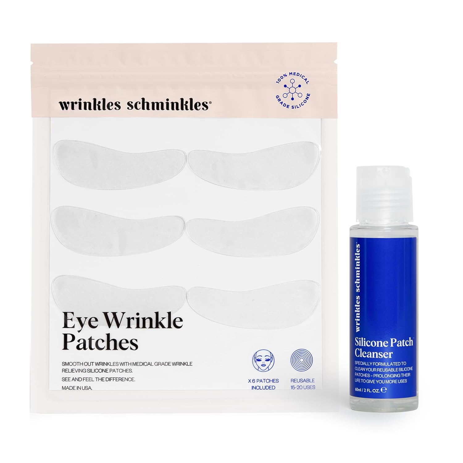- BUNDLE USAGE: This beginner bundle includes 3 pairs of our reusable medical-grade silicone under eye wrinkle patches along with a 2 oz Patch Cleanser. Ideal for combating under-eye wrinkles and fine lines, this bundle offers a comprehensive solution for rejuvenating the delicate under-eye area.