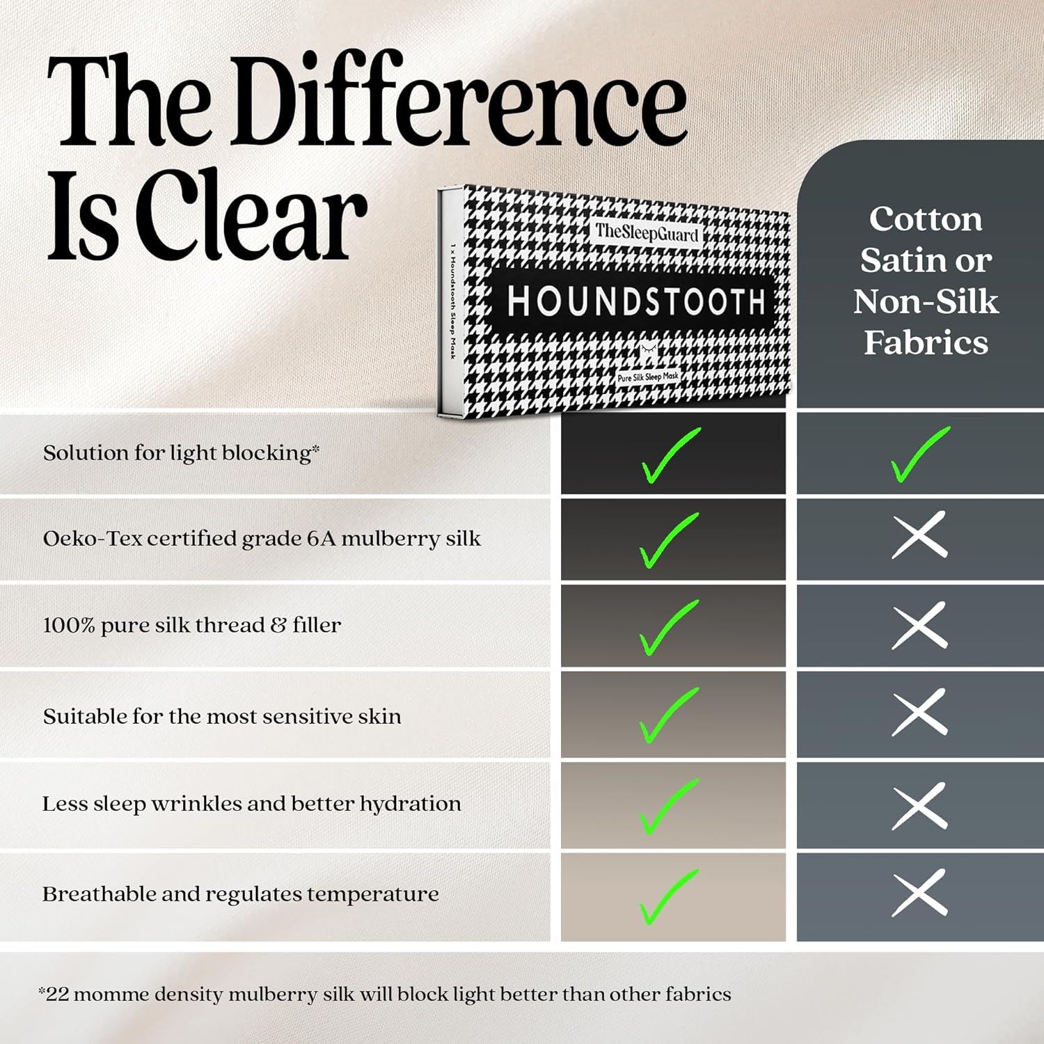 - ✅ INVEST IN YOUR SLEEP - Experience TheSleepGuard difference with our luxury sleeping masks. Crafted from the highest grade 6A Mulberry silk at 22 momme and certified by Oeko-Tex to ensure you sleep soundly. Remember, better sleep leads to a better you.