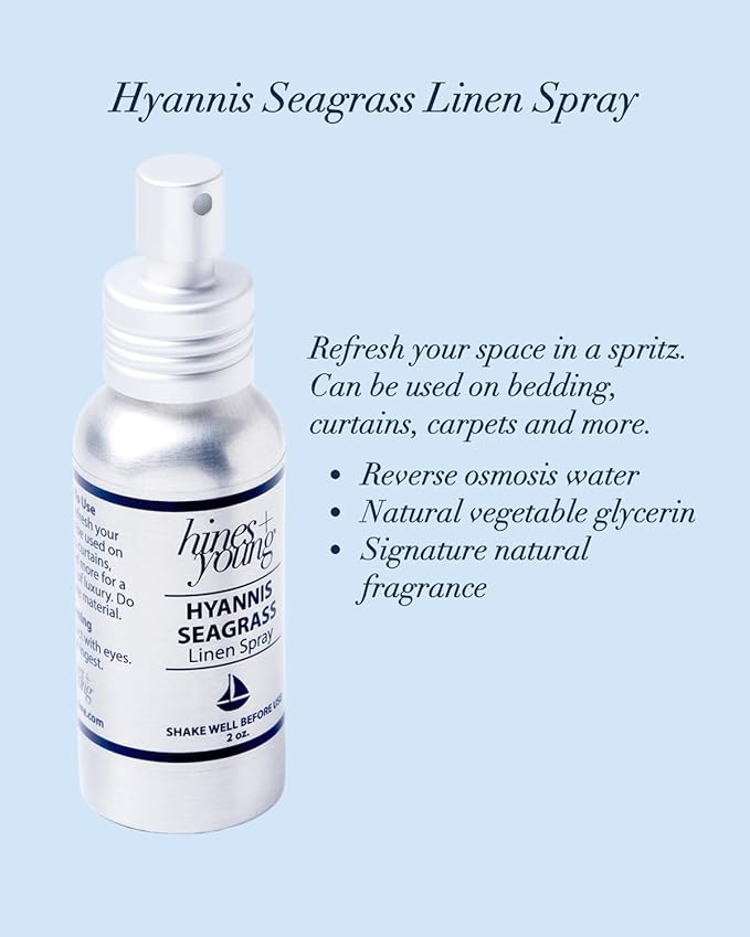 Hines+Young Travel Tins Gift Set - 4 oz Body Cream, 2 oz Linen Spray, Natural Lip Balm - Skin Care and Refreshing Home Fragrance, Ideal Self-Care Gift Set (Pack of 3, Hyannis Seagrass)