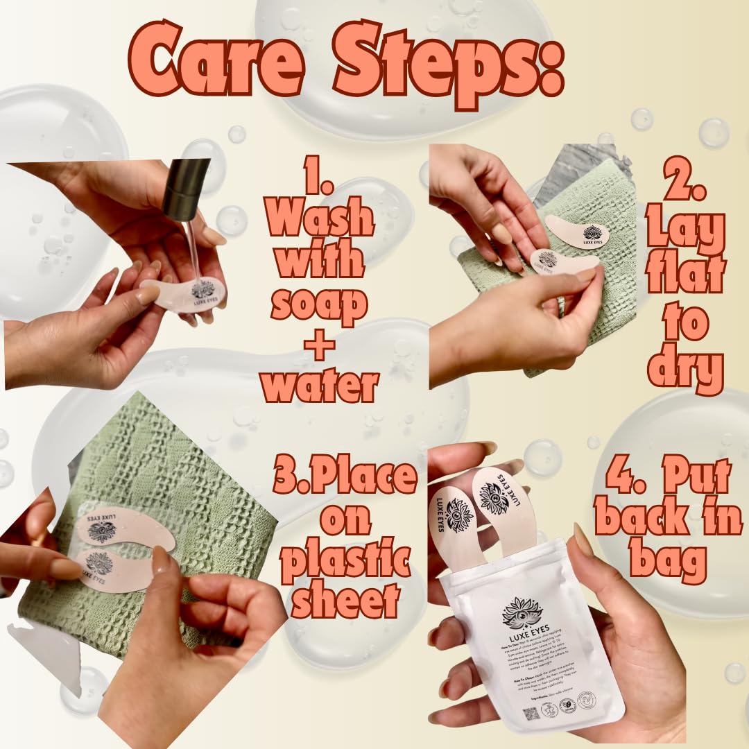 - Adhesive-Free Eye Gel Pads - Experience our anti-wrinkle eye patches, providing a snug and irritation-free fit. Luxe Eyes uses premium hypoallergenic silicone in an adhesive-free design for our under-eye masks, ensuring unmatched comfort and easy application.