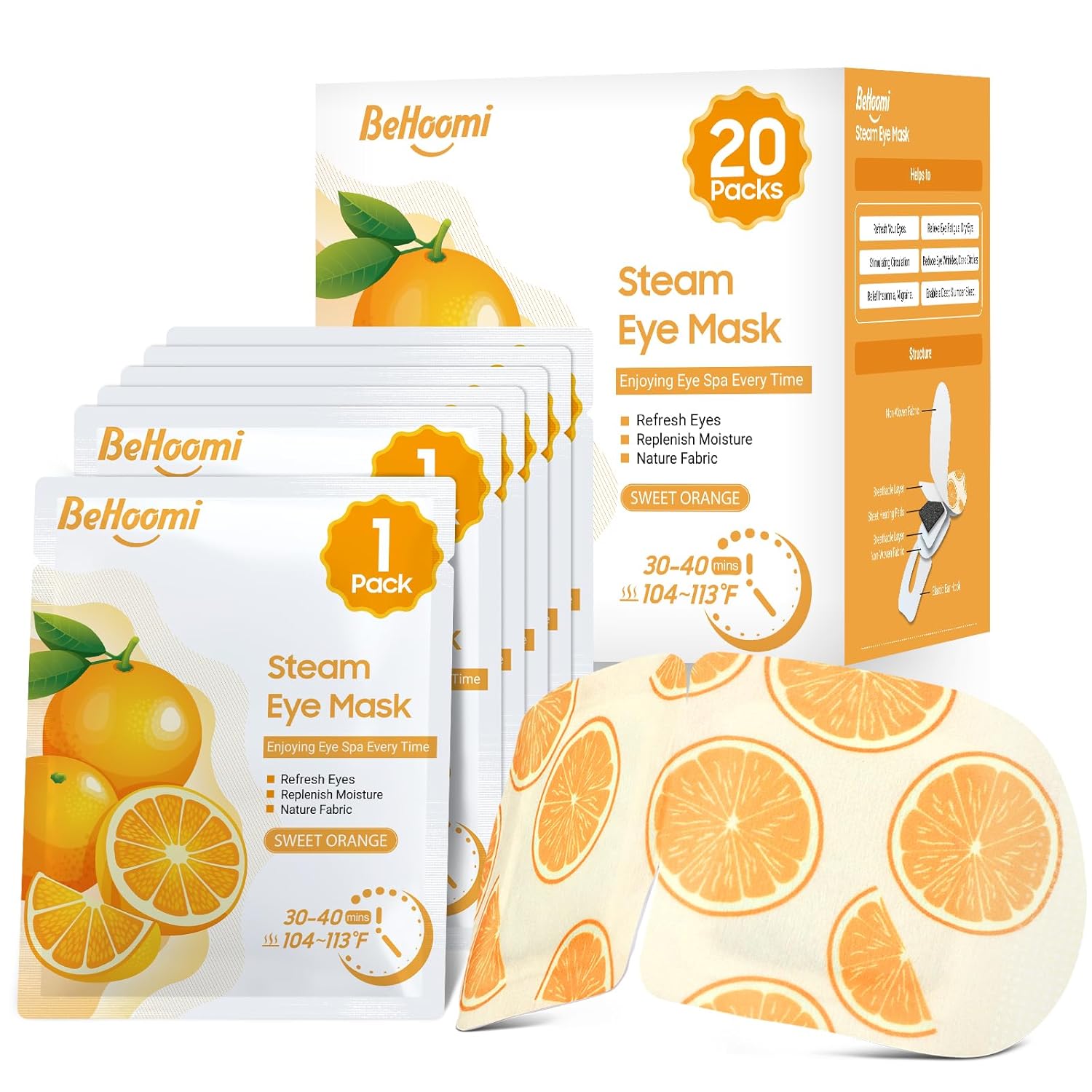 Steam Eye Mask, 20 Packs Heated Eye Mask Warm Compress for Eyes, Disposable Self Heating Eye Mask for Sleep, Spa, Travel Essentials & Relaxation Gifts for Women, Men (Sweet Orange)