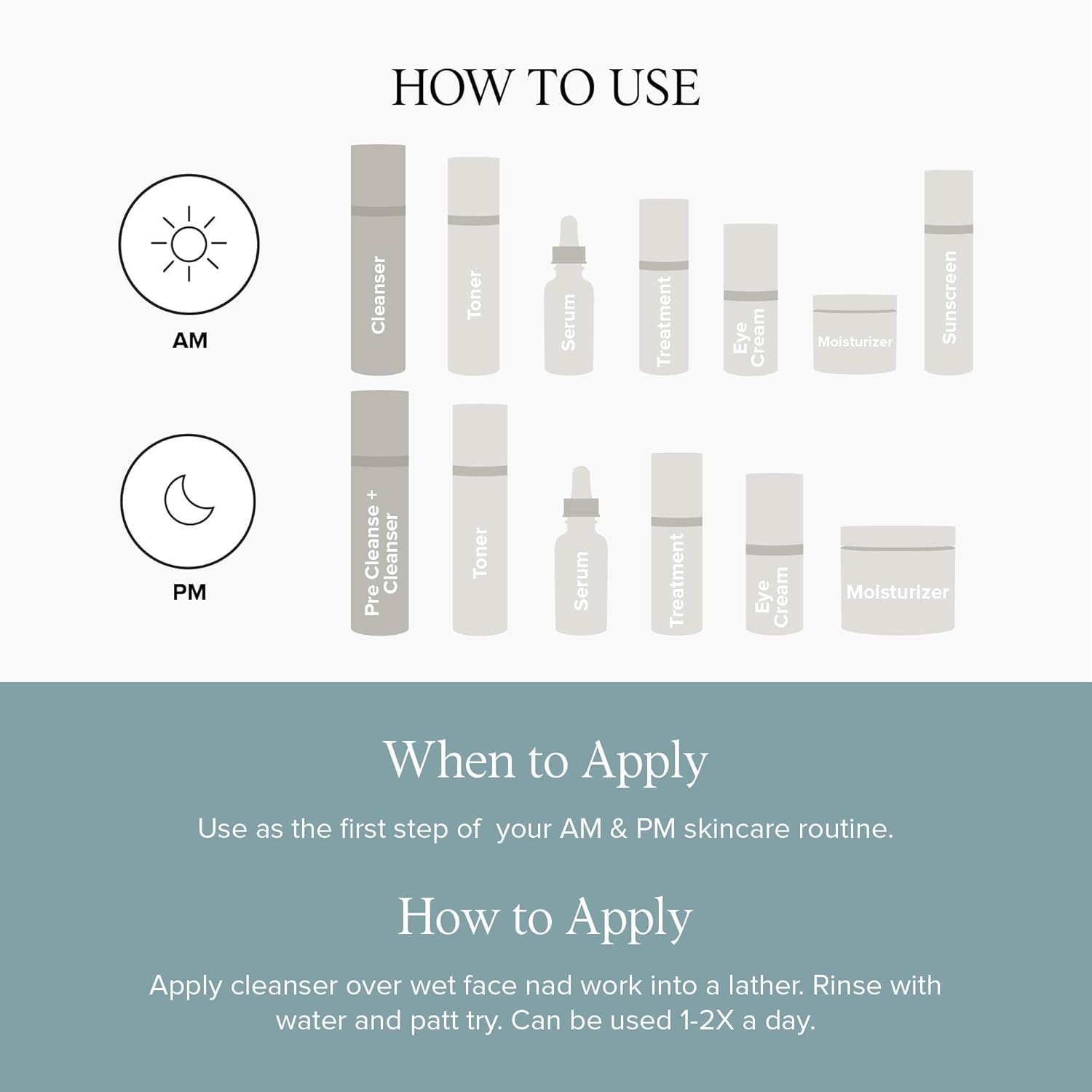 - How to Use: Apply face cleanser over wet face and work into lather. Rinse with water and pat dry. Can be used twice daily or as directed by a physician.